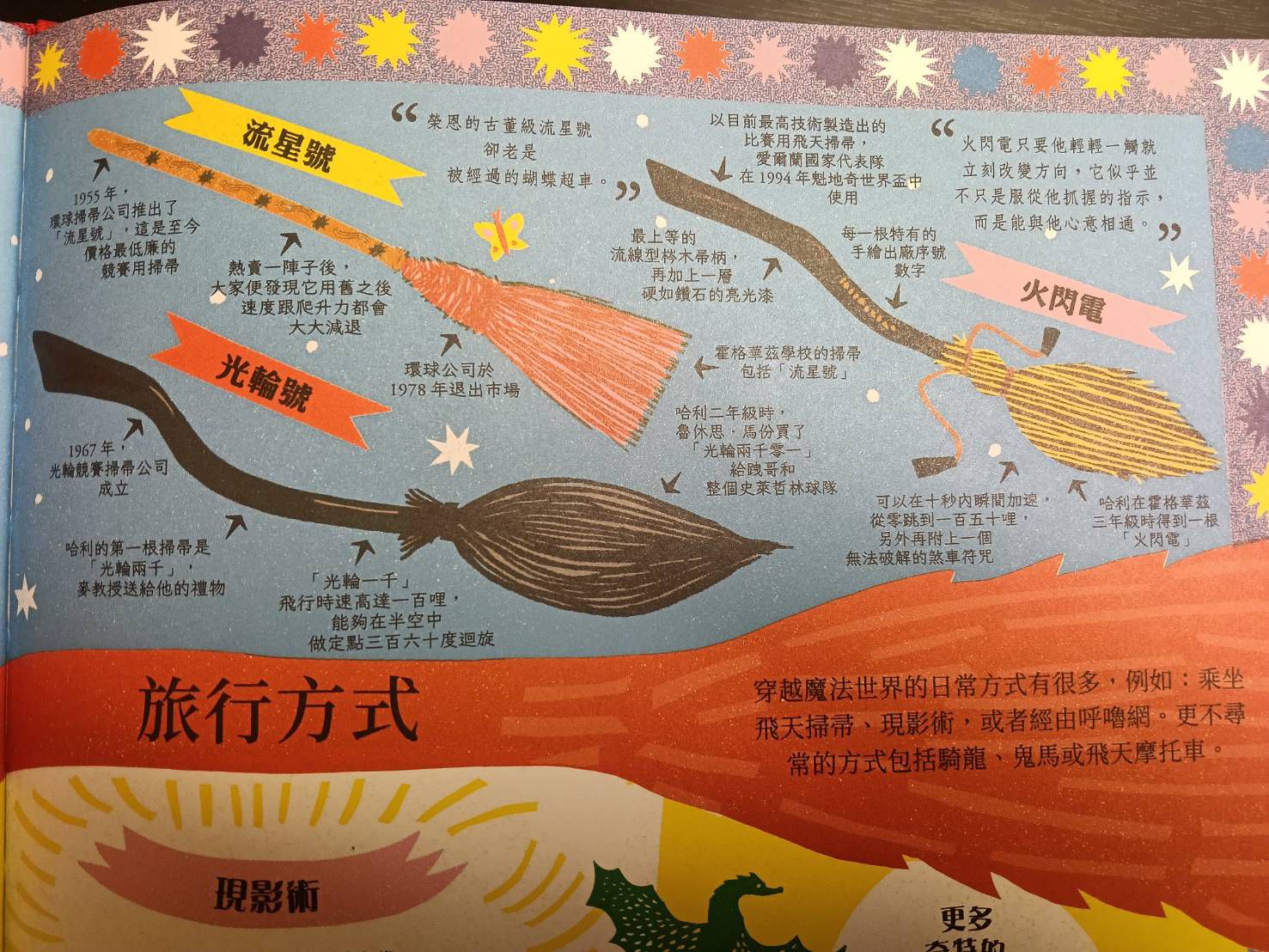 隨後的快速剪輯中,可以看到三人探索霍格華茲的片段,包括魔法課堂、城堡走廊與魁地奇場景。哈利拆開飛天掃帚光輪兩千的畫面、分類帽的出現,以及鄧不利多、石內卜、跩哥・馬份與奧利凡德等關鍵角色的亮相,都在短短兩分鐘內串起整個第一學年的核心輪廓。