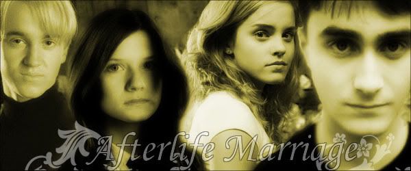 「我願意!」哈利為金妮戴上指環,親吻她的嘴,金妮對他奉上一個甜蜜的笑容,這是金妮第一次笑,教堂鐘聲響起了,