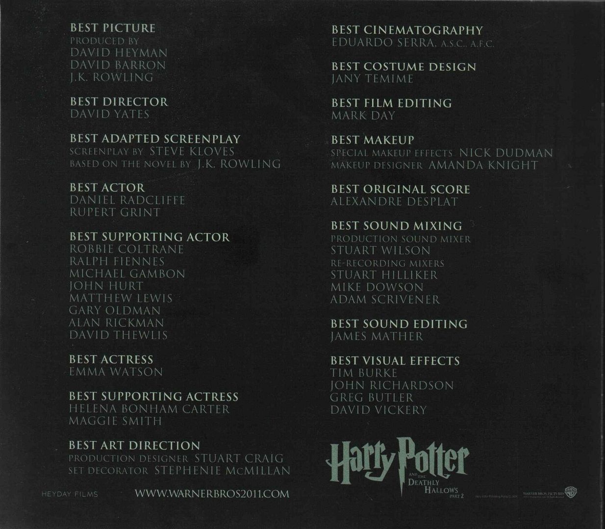 大家開始意識到HP不會獲提名奧斯卡的重要獎項,