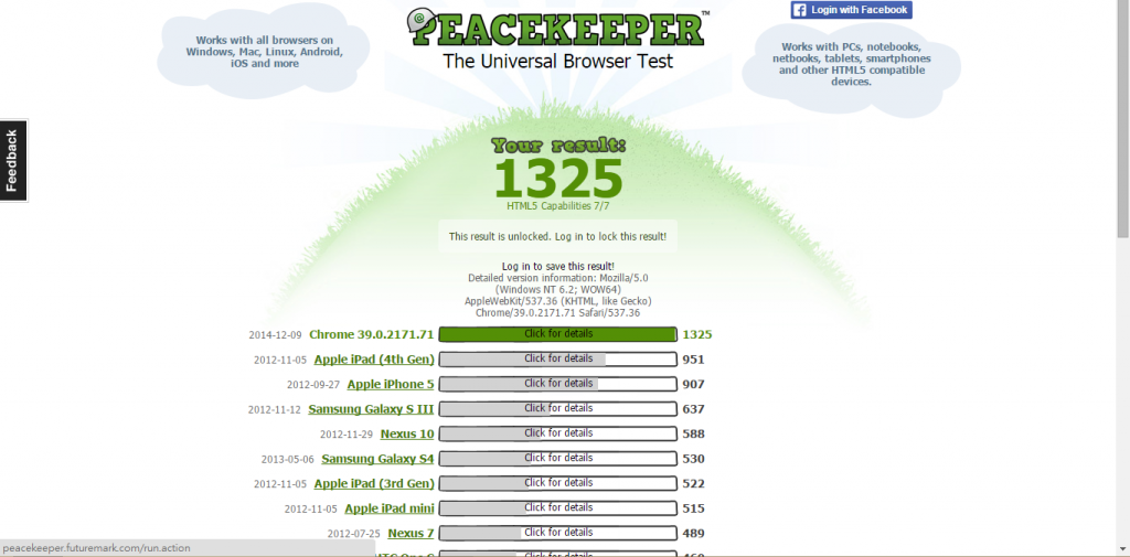 Detailed version information: Mozilla/5.0 (Windows NT 6.1; WOW64) AppleWebKit/537.36 (KHTML, like Gecko) Chrome/39.0.2171.71 Safari/537.36