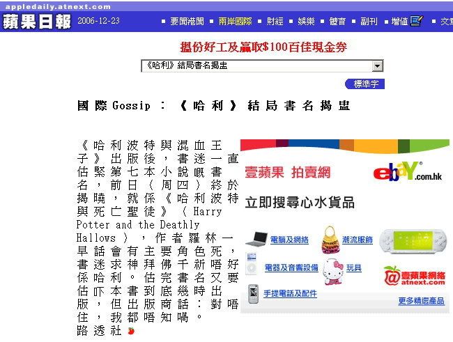 好酷的書名,不過我在新聞看到的怎麼會是--------哈利波特與致命聖物?🙂