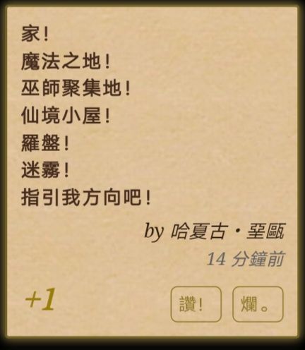抱著課本跟室友匆匆的走向上課地點,哇嗚這充滿中古世紀氛圍的教室真是太真實了,果不其然的聽到了那些經典的話語,真有臨場感呢,不過這也是當然的,畢竟我已經身在其中了嘛!就是羽毛筆和羊皮紙用的不是很習慣,我愛手機、我愛平板、我愛錄音以及文字轉語音的app,我愛網路,而網路已經離我而去了,畢竟我現在有魔法了!等我努力學習,然後創造出比這些更靈活更先進的替代品,就可以無限躺平啦。
