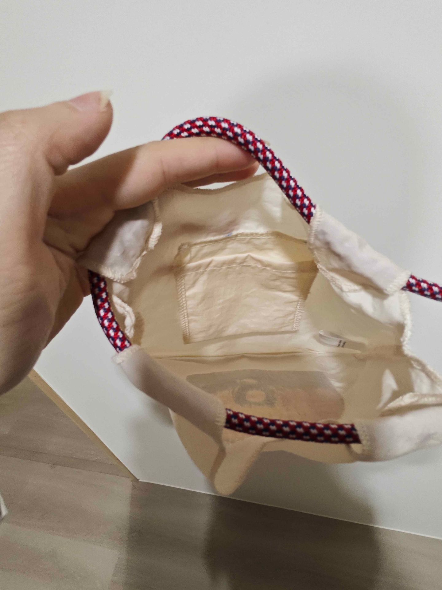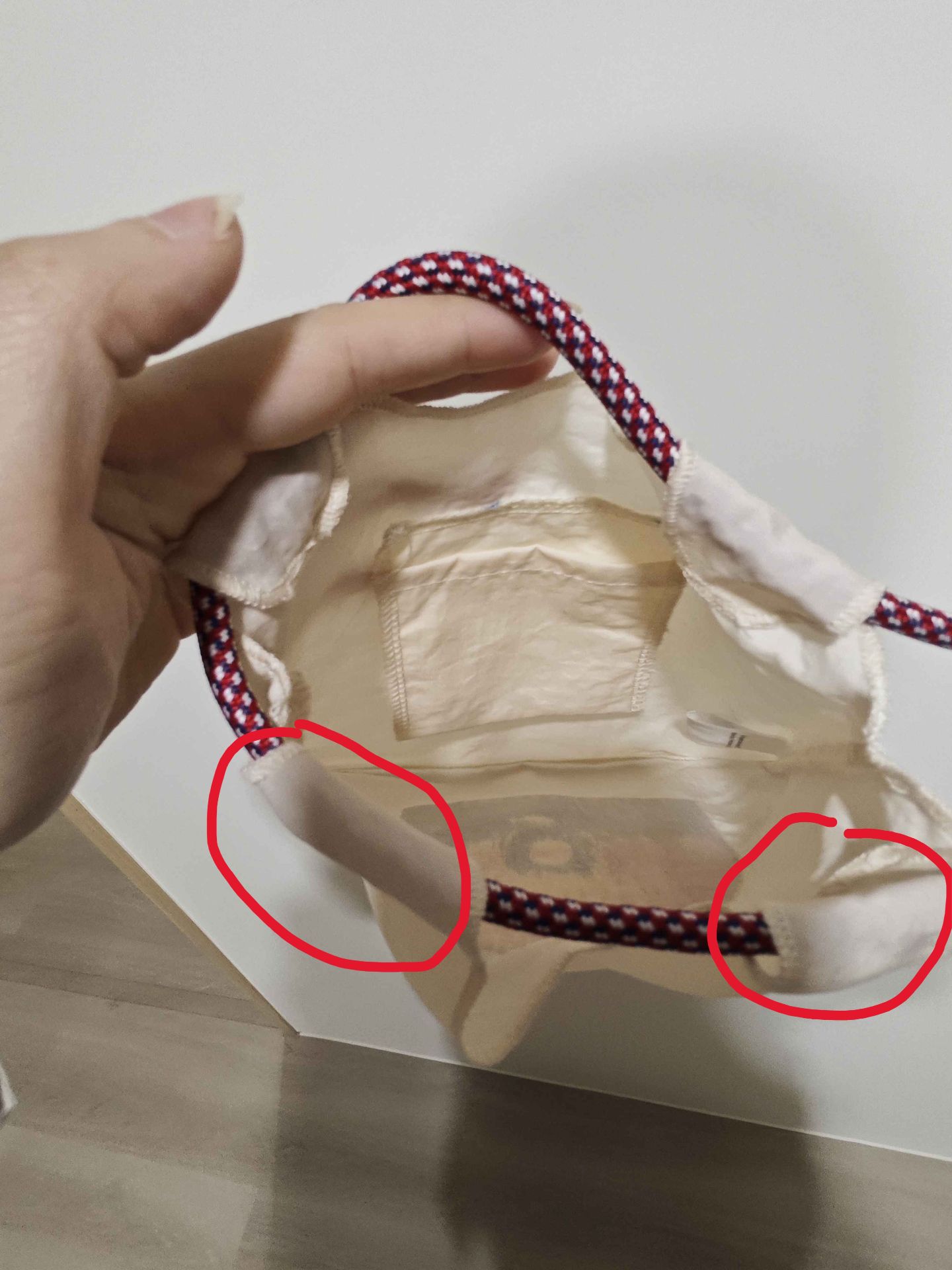 因為它穿繩的布面只有一條細細的縫線,所以承重有限