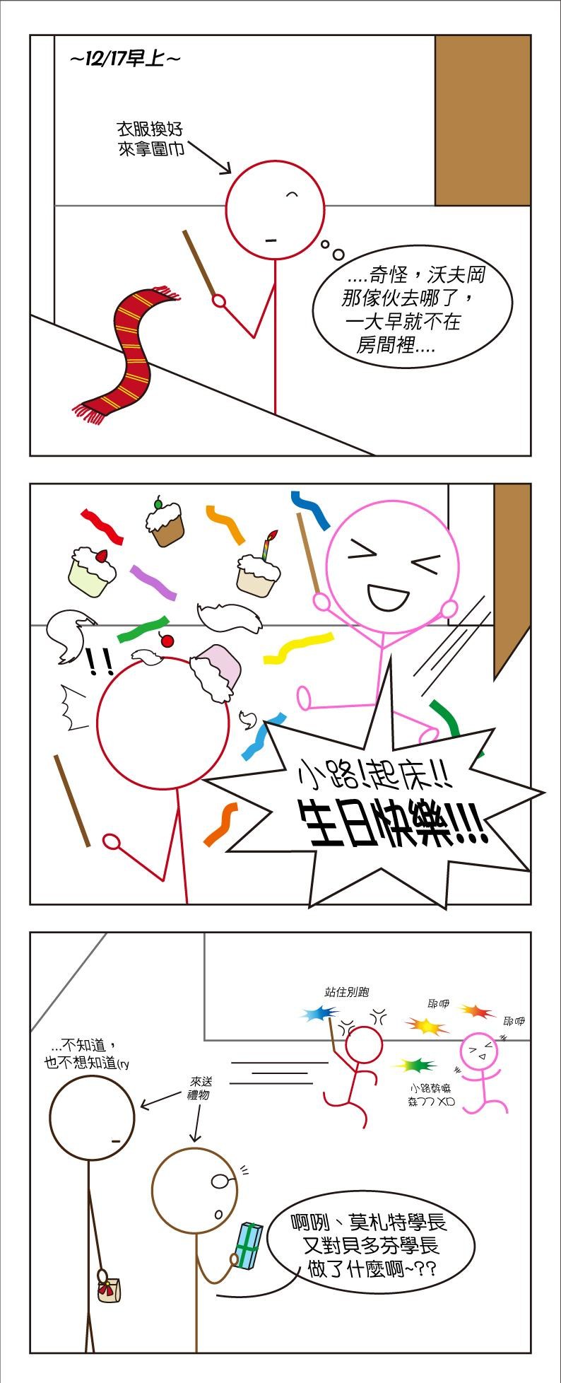 「-混帳!居然敢那樣子偷襲、看我現在就把那小鬼從掃帚上打下來-」貝多芬氣憤的吼道,在他捲袖子的同時另一隻手也真的把魔杖拿了出來。