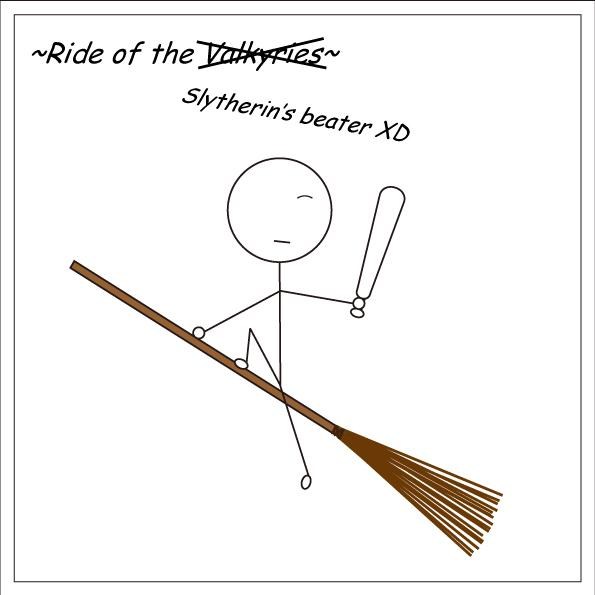 「…不過從剛剛到現在明明已經有好幾次機會能抓到金探子啦,」貝多芬沒好氣的表示,「所以我們根本早就可以結束這場比賽了…要不是史萊哲林的隊長一直妨礙我們的搜捕手的話-」