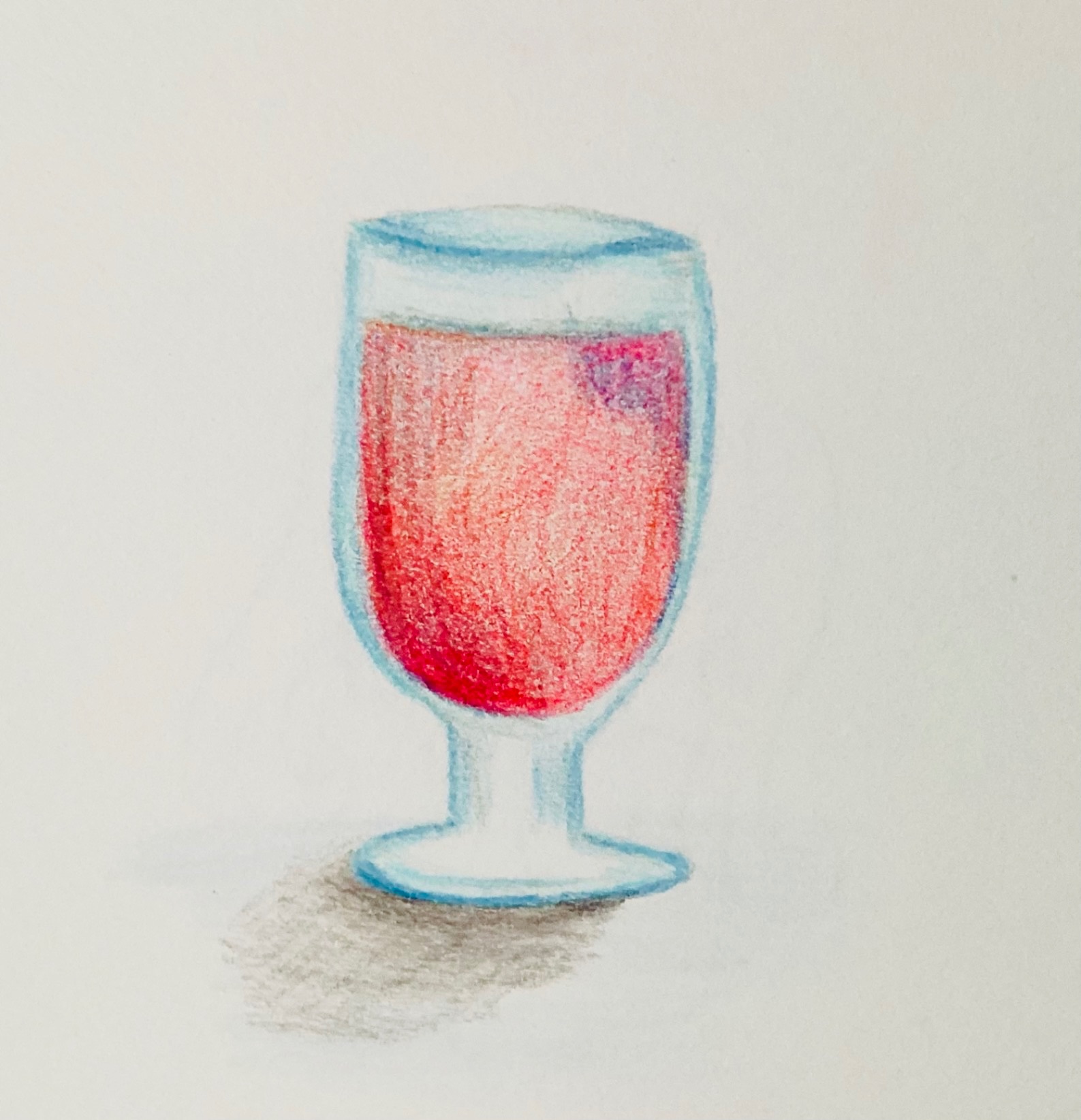今次嘗試用木顏色筆做出玻璃杯、果汁的顏色