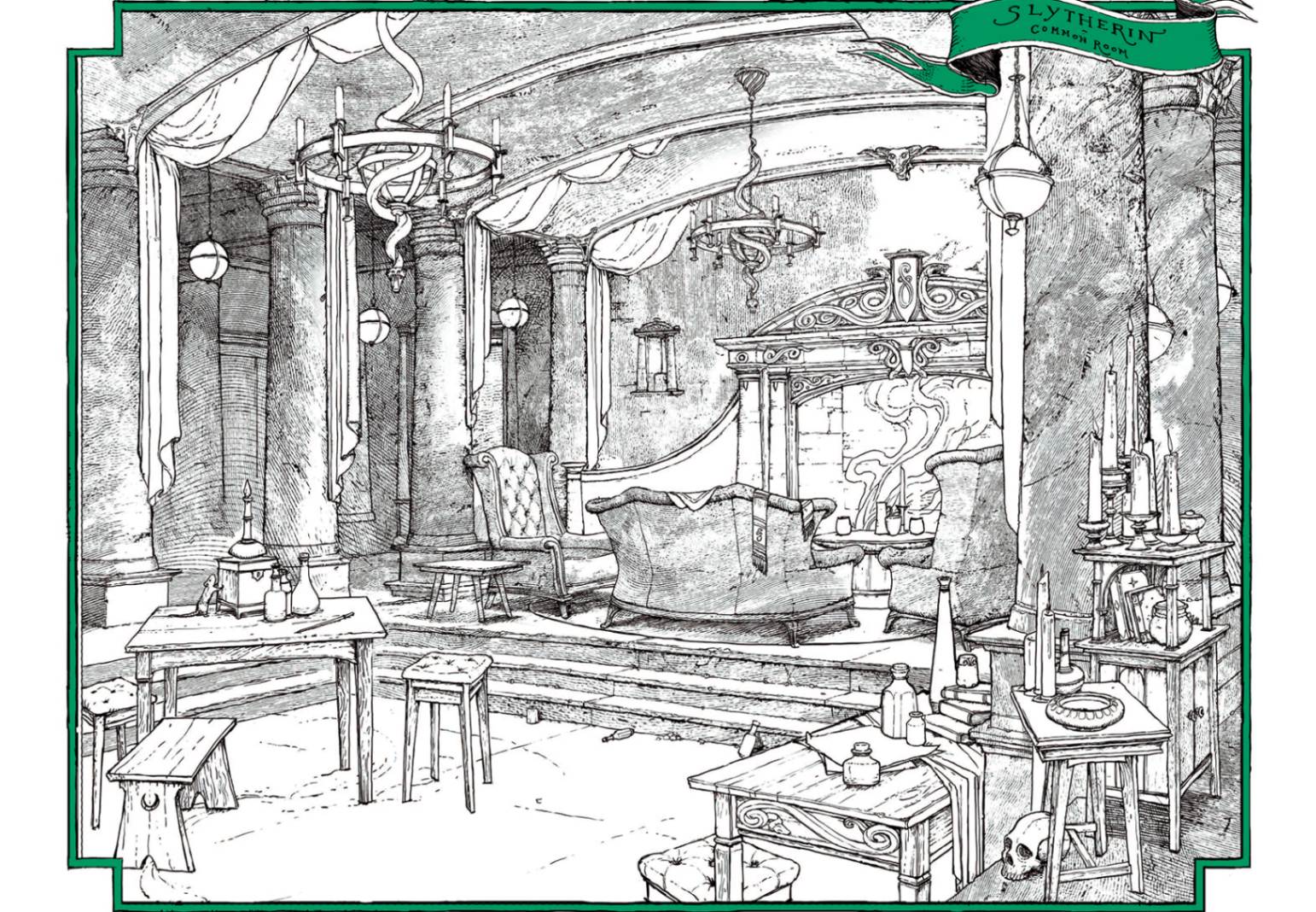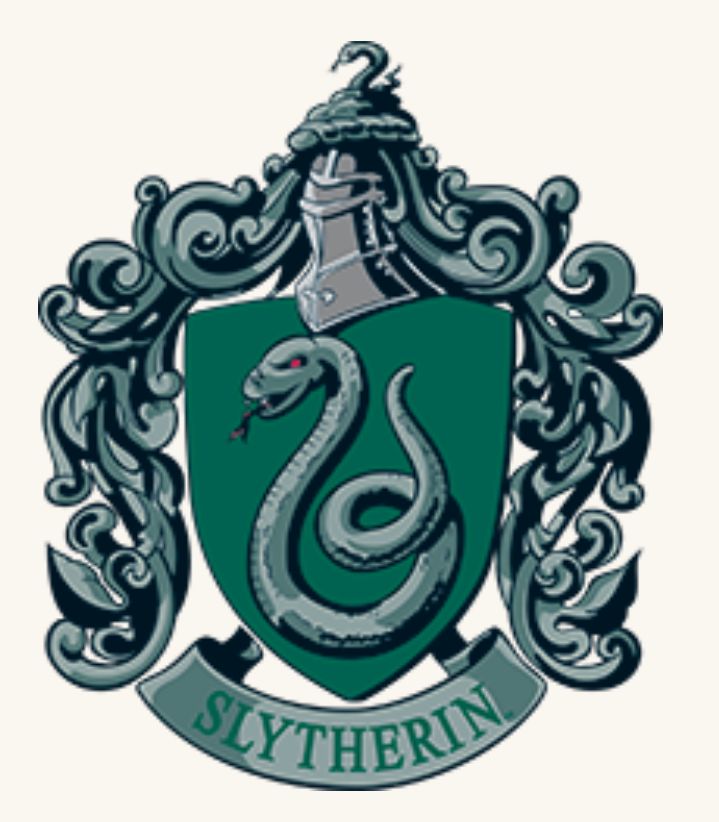蛇的學院!嘶——!這個由薩拉札.史萊哲林創辦的學院,或許沒有好的名聲。但若沒有史萊哲林,就不會有偉大的巫師梅林——或是可愛的天蠍.馬份。除了狡猾與果決,這個學院還隱藏的很深。