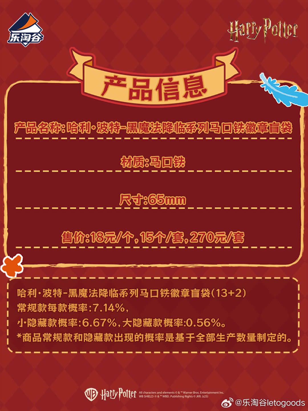 【情報】樂淘谷新品盲袋:哈利波特 黑魔法降臨系列馬口鐵徽章盲袋