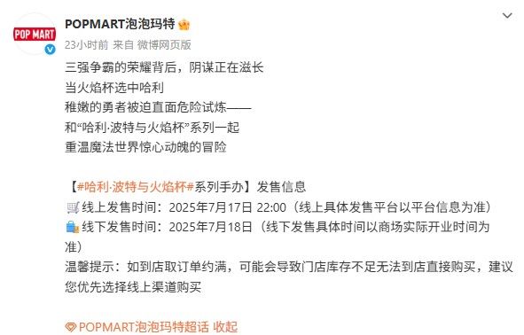 盲盒預計於7月17日於線上平台發售,線下商店則為7月18日(具體時間以各平台、店家為準)