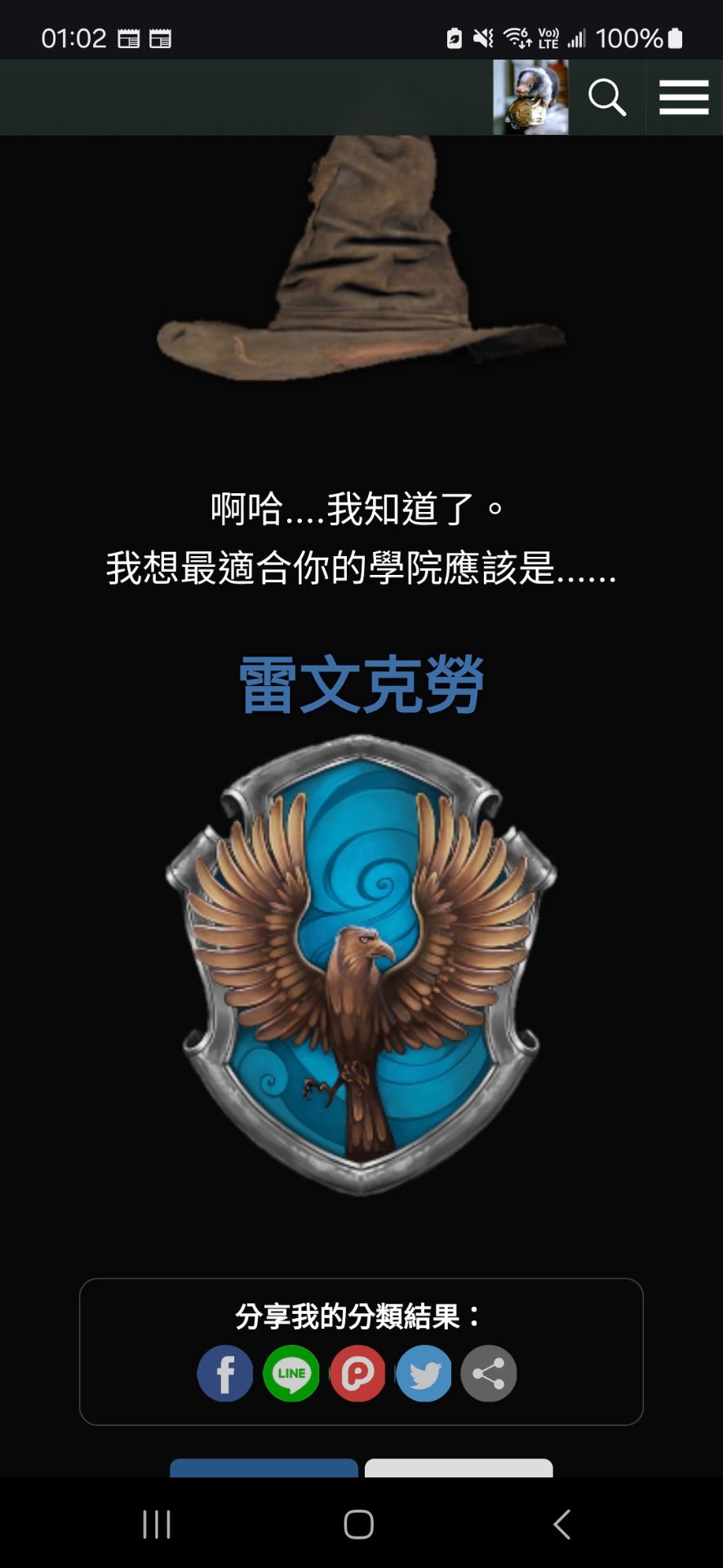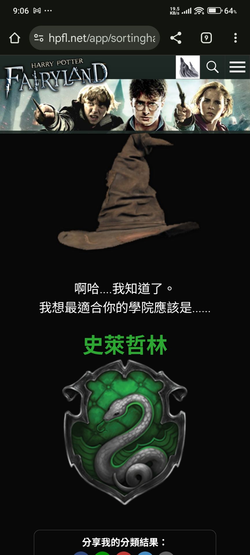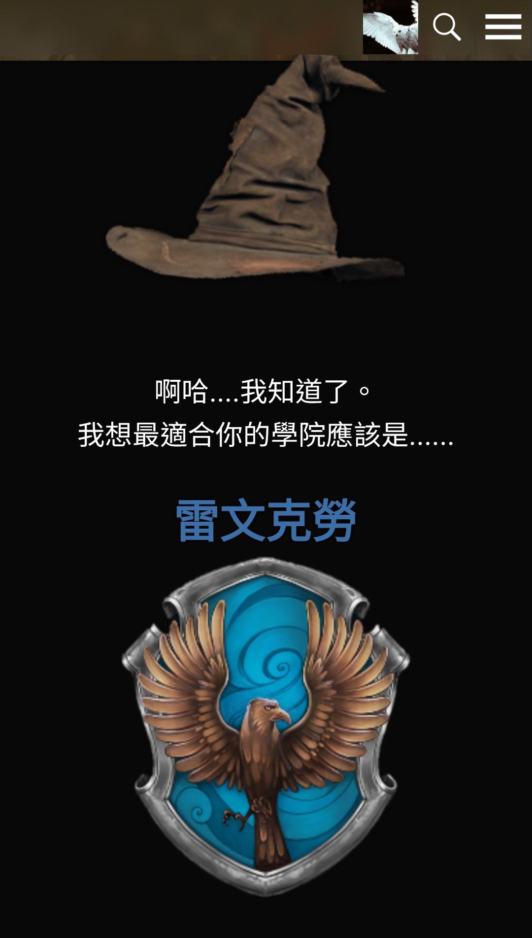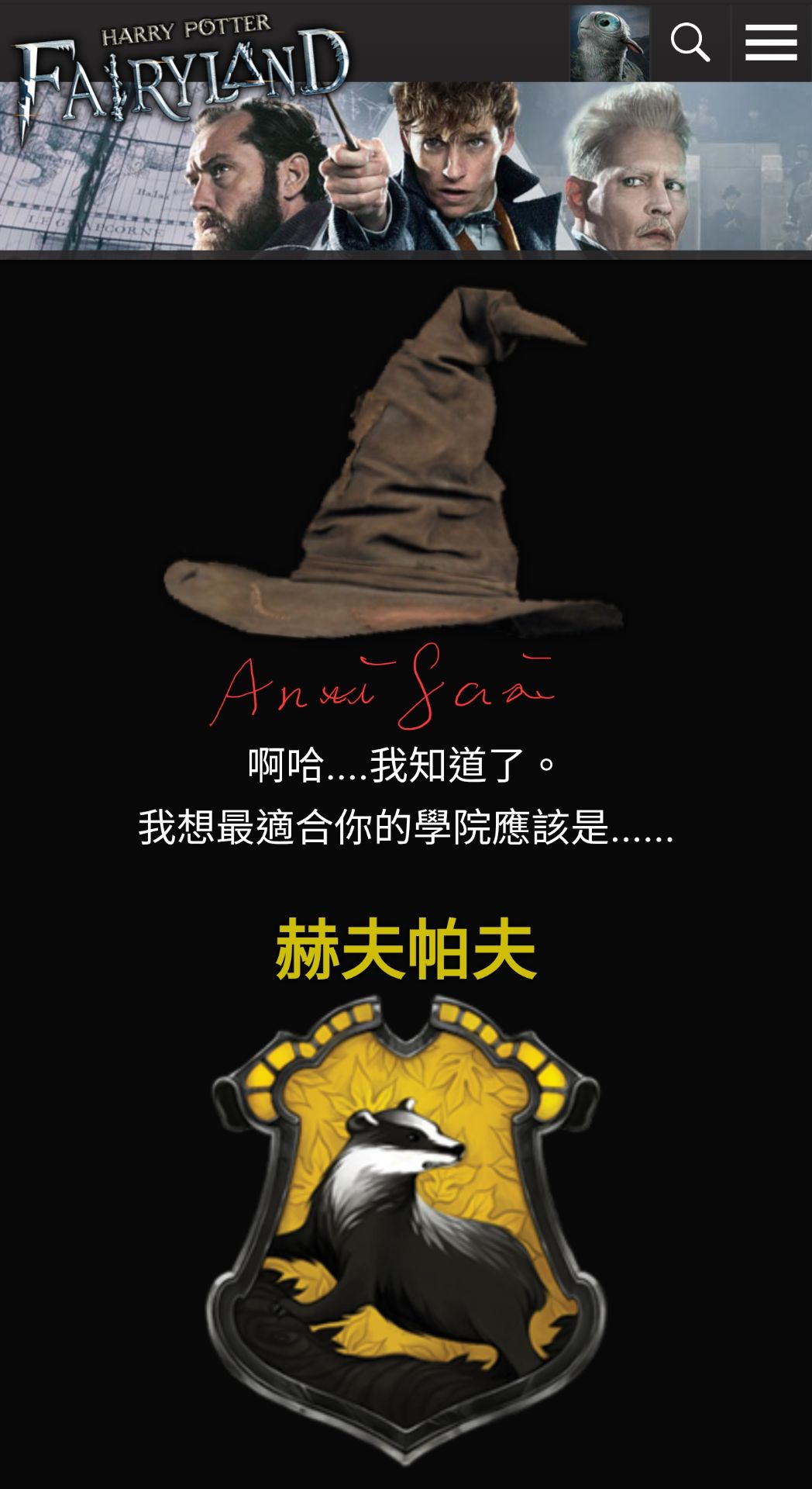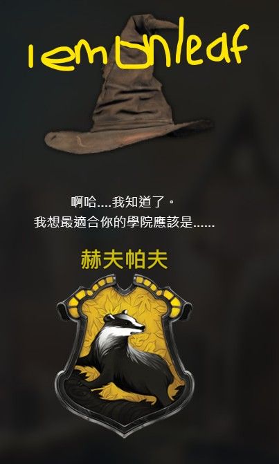 任務一:玩哈利波特仙境的魔法小玩意中的分類帽,並截圖結果