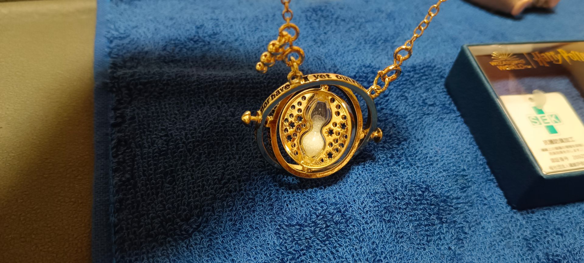 黃燦燦的時光器沉甸甸的在指尖旋轉,冰涼的觸感提醒著使用者保持冷靜的大腦,文字與沙粒在轉動中交織,似乎正要帶領著誰走向時間的縫隙......