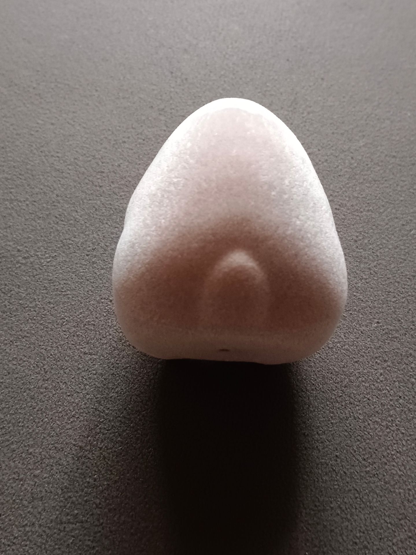 【但你覺得這個角度的玻璃獸寶寶屁屁弧度很可愛,所以翻到背面拍照,並獲得一顆長了短短尾巴的三角飯糰。】