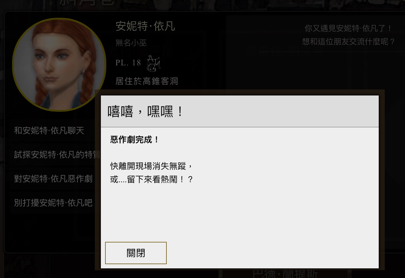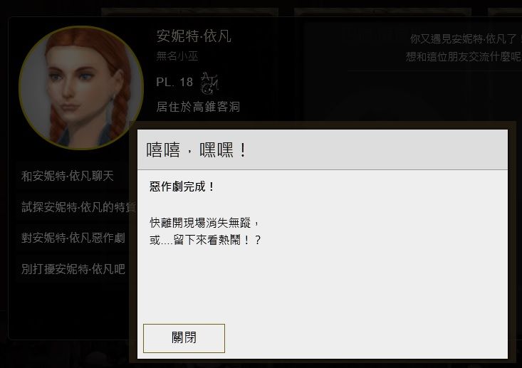 在魔生中遇到巫巫時,有一個很少被使用的互動功能——惡作劇。