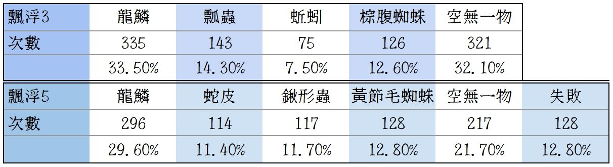 | 蚯蚓 | 0.45 hr / 隻 | 飄浮咒3 | 1西 1納 | |