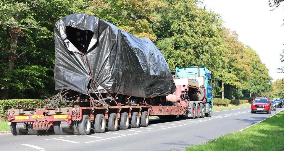以下圖片可能涉及劇透 介意者請勿往下滑 活米村車站建造中! 近日據說新一代霍格華茲特快車被運送至 溫莎(Windsor)的森林小屋(Forest Lodge)。 該地正在建造一個大型的活米村車站場景,該場景還包括一個穿越森林的約800米長的軌道。 (via The Sun) 圖片來源 新聞來源 4