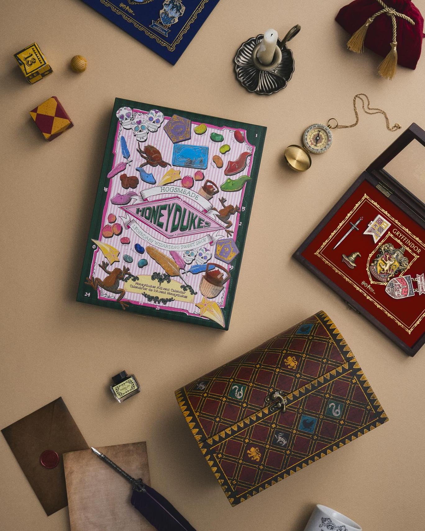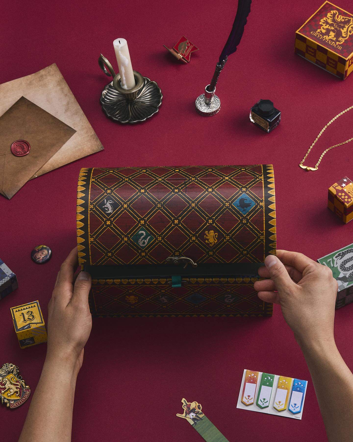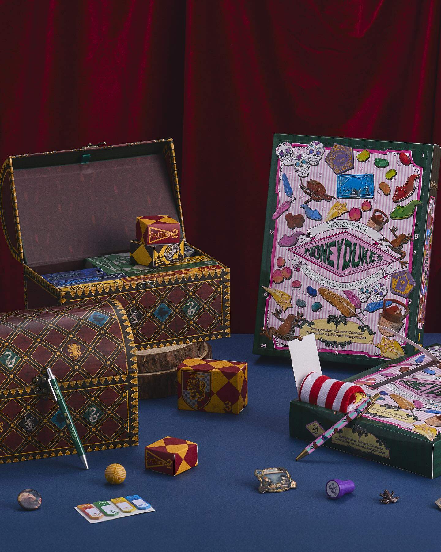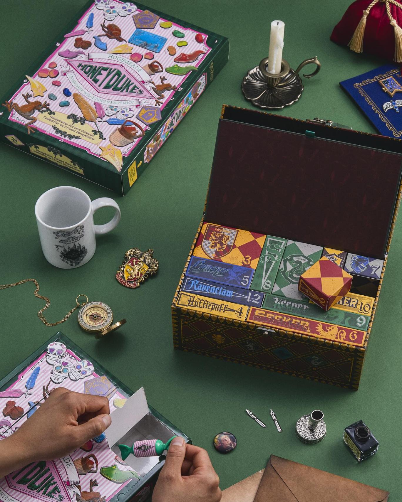 ✨ 魁地奇倒數月曆 —— 以箱子造型收納盒為設計,內含 24 款高級配件、飾品與實用小物,特別為成年粉絲打造的收藏級組合。