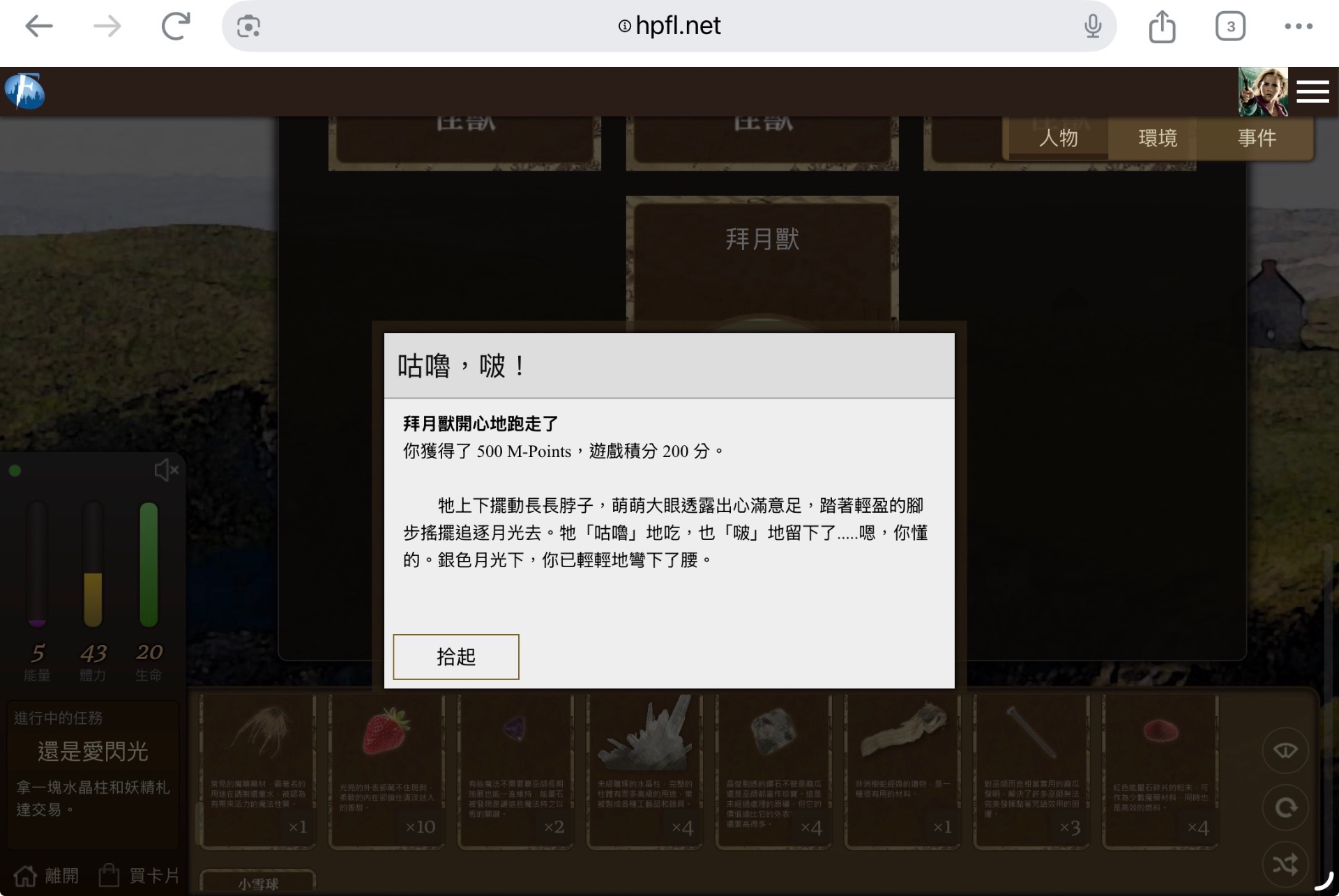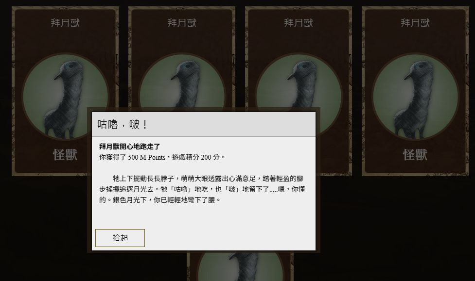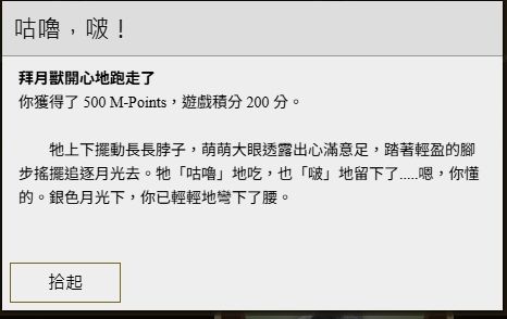 因為有去年的一點點庫存所以看到拜月獸就馬上餵了,感謝去年勤勞的我!