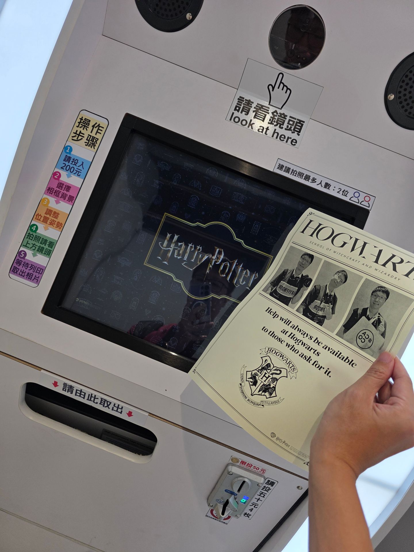 不過這次的拍貼機印出來的,是像魔法部海報那樣的風格,