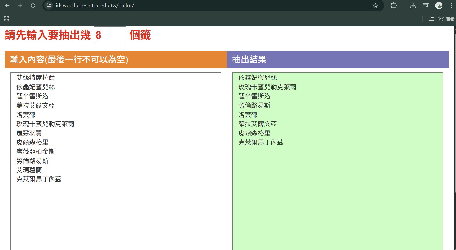 結果:(依順序對應首樓內禮物名單)