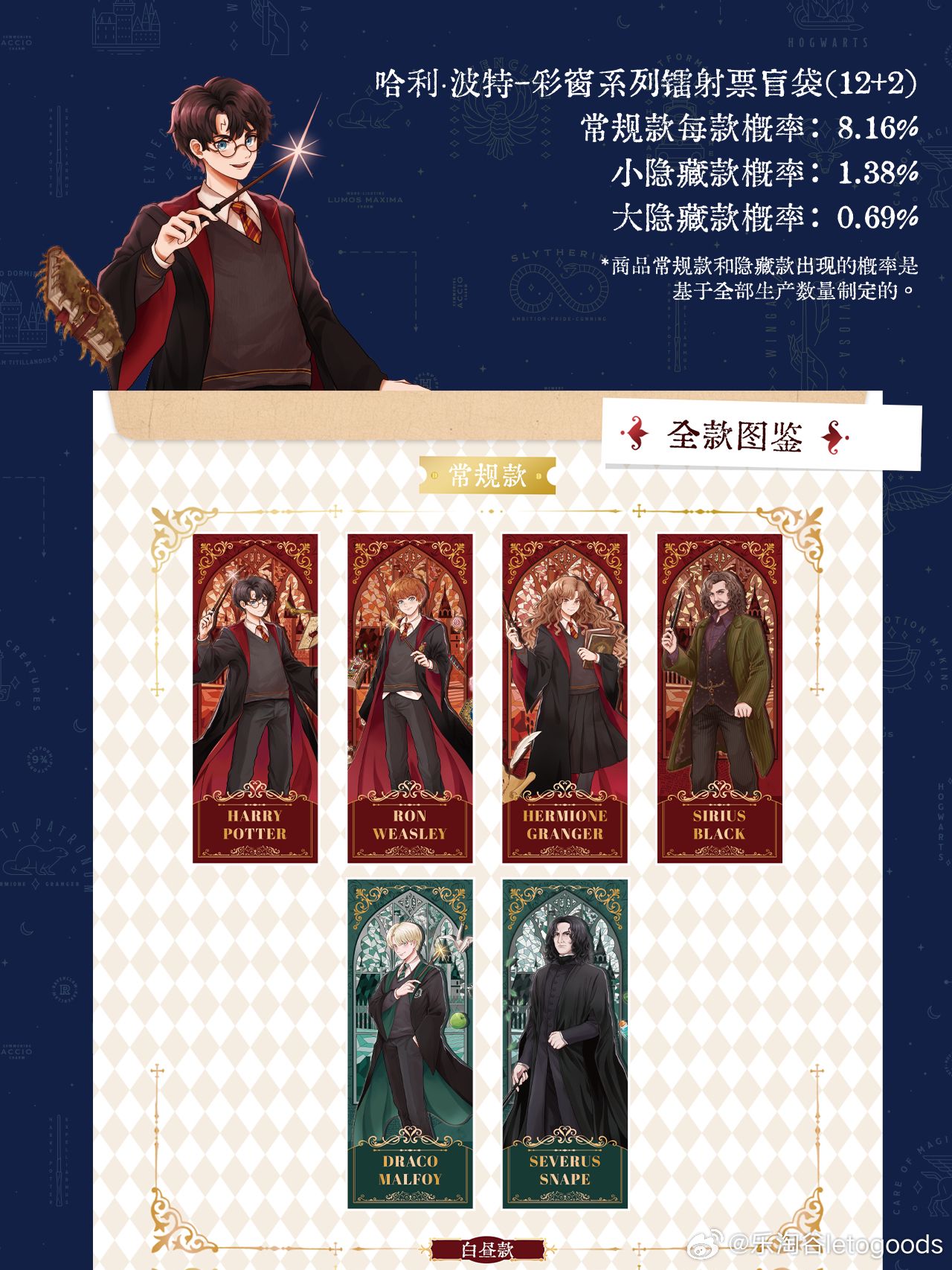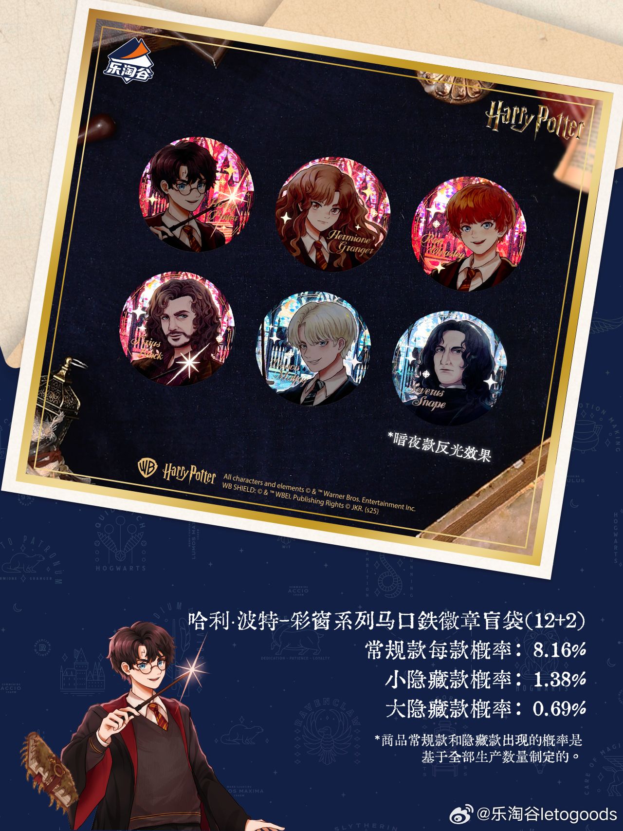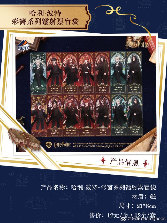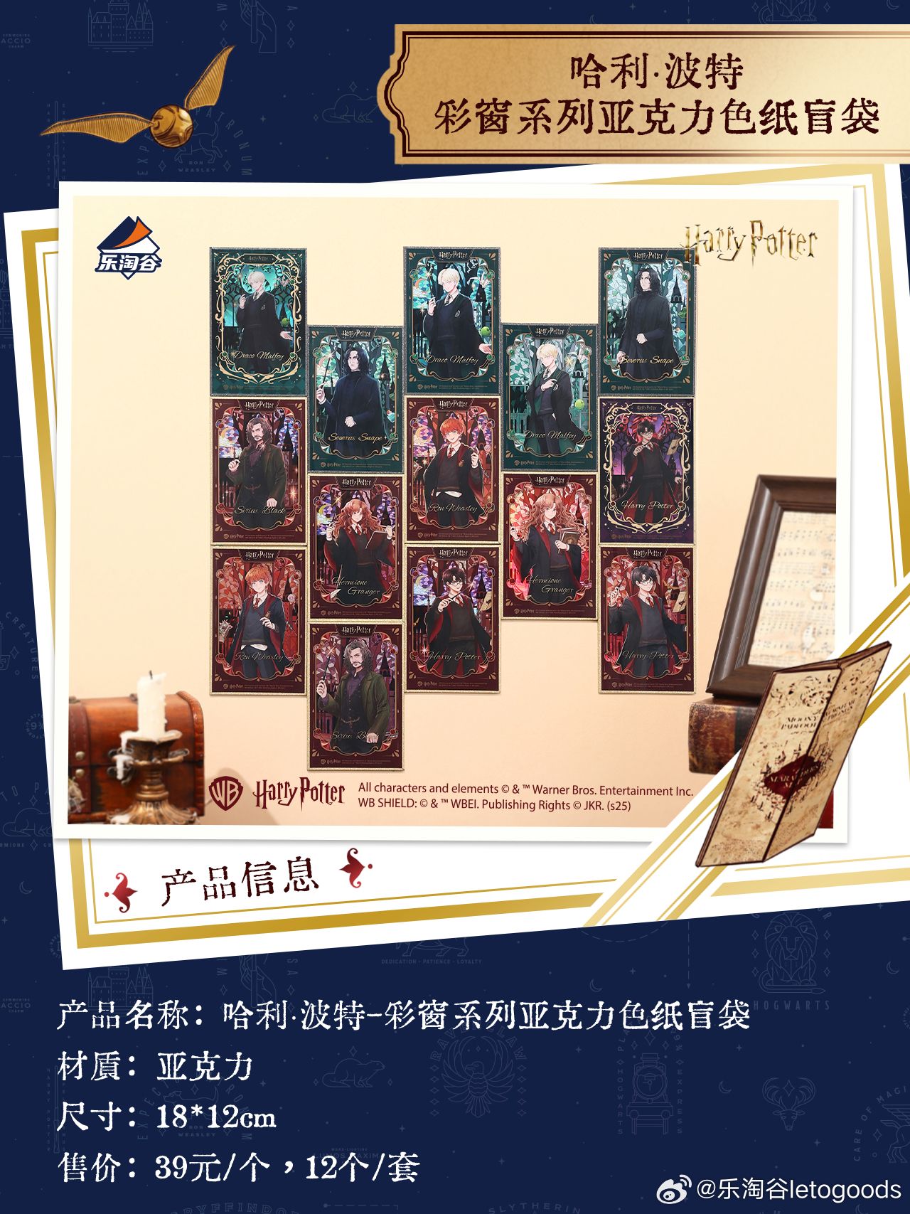 樂淘谷新品:哈利波特彩窗系列 透過魔法的彩窗 以白晝的光輝與暗夜的陰影 呈現光明中閃耀勇氣 黑暗中藏匿秘密 雙面角色交織光影 開啟魔法冒險! 11月10日 10:00 預售 彩窗系列盲盒/盲袋包括以下項目: 馬口鐵徽章盲袋 鐳射票盲袋 亞克力色紙盲袋 流麻盲盒 亞克力立牌盲盒 3