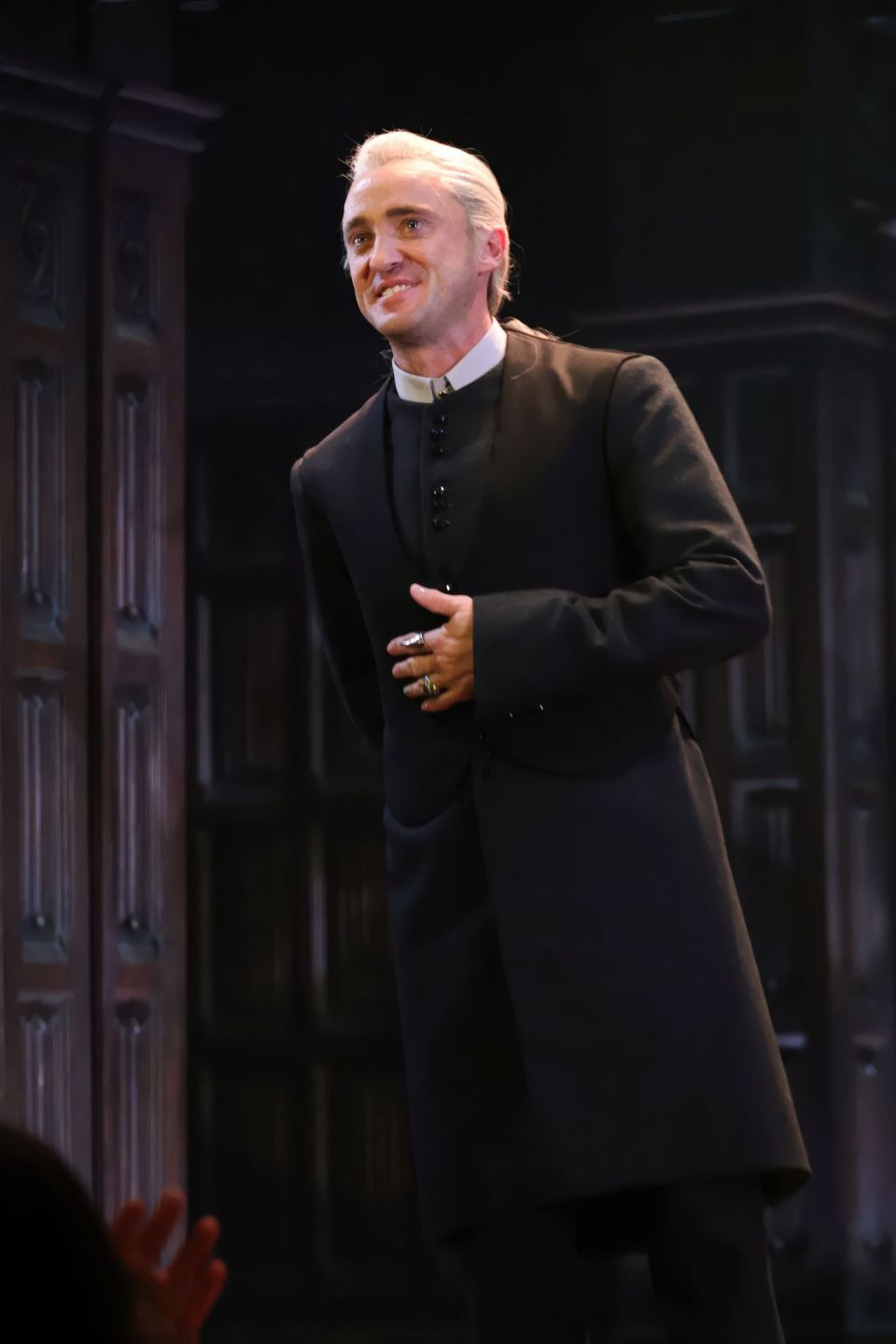 湯姆再次戴上假髮,穿上成人後的跩哥戲服,那股熟悉的氣質儼然立刻上身。首批劇照以及首演影像開始曝光,引發現場與網路上大量的哈迷共鳴:「我當場哭了,看到他聽著全場歡呼努力穩住情緒。」「能在場見證這一刻太不可思議。」