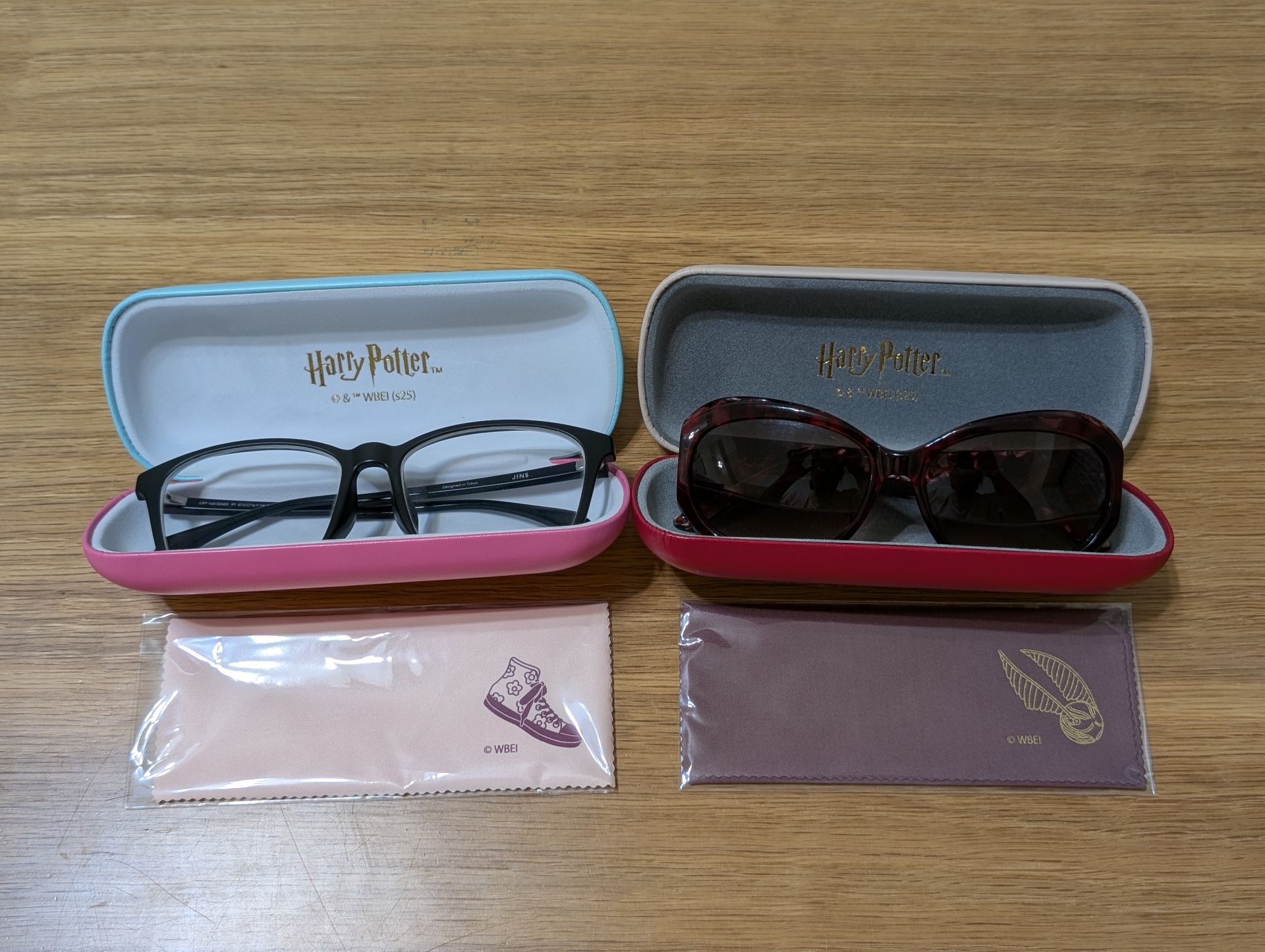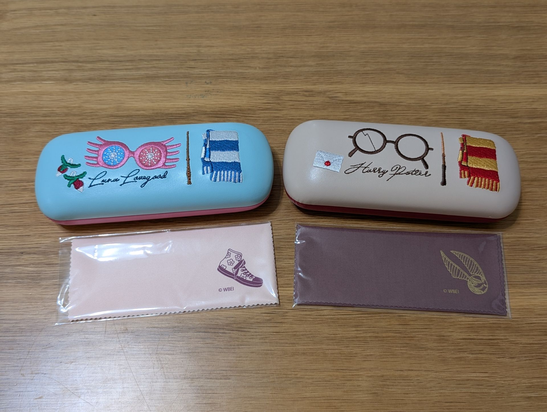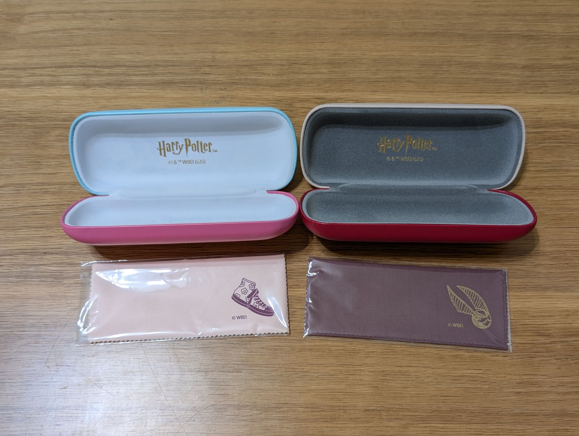 眼鏡盒內的底色也不同,哈利的是灰黑色的、露娜的是白色的。