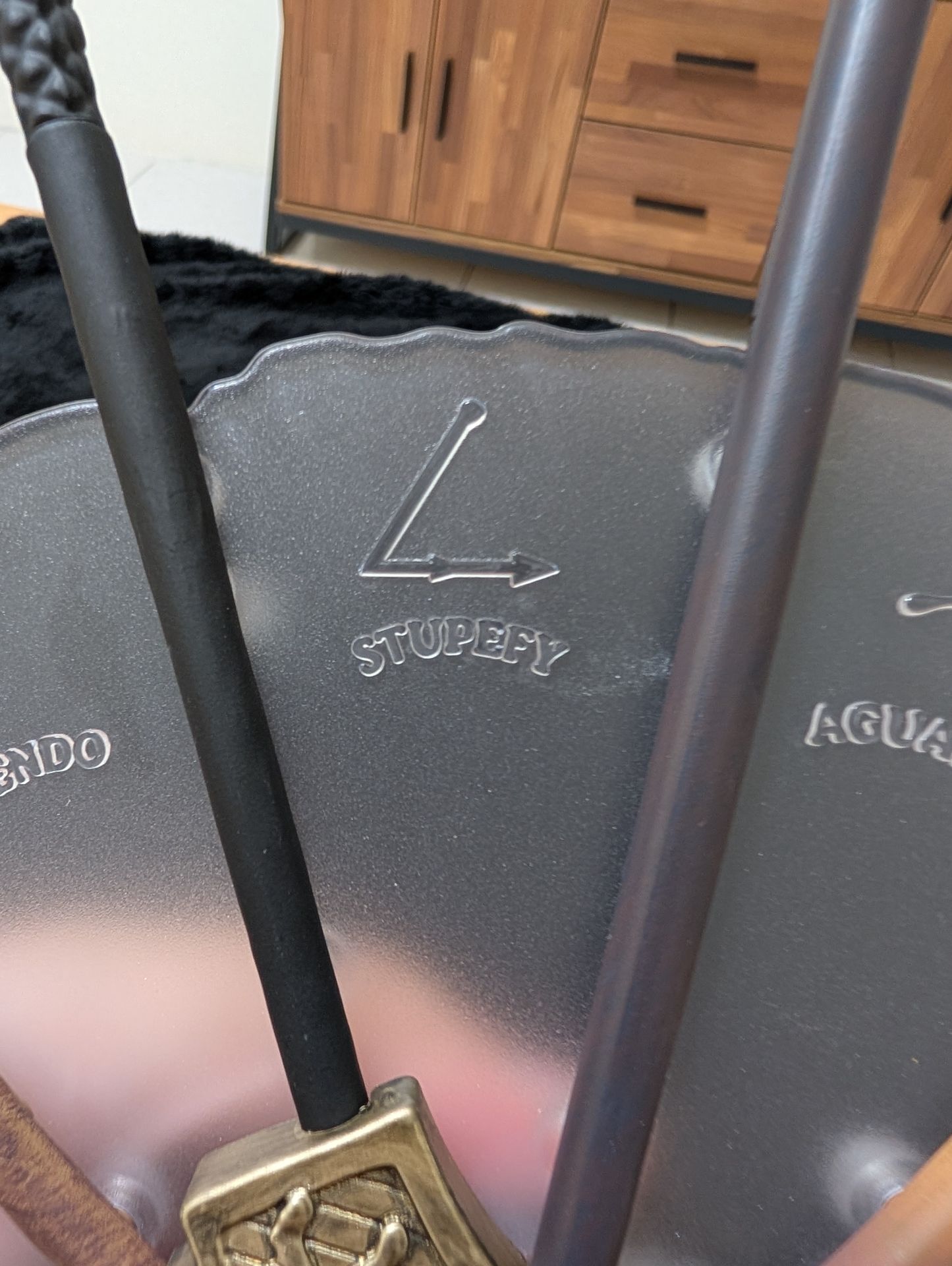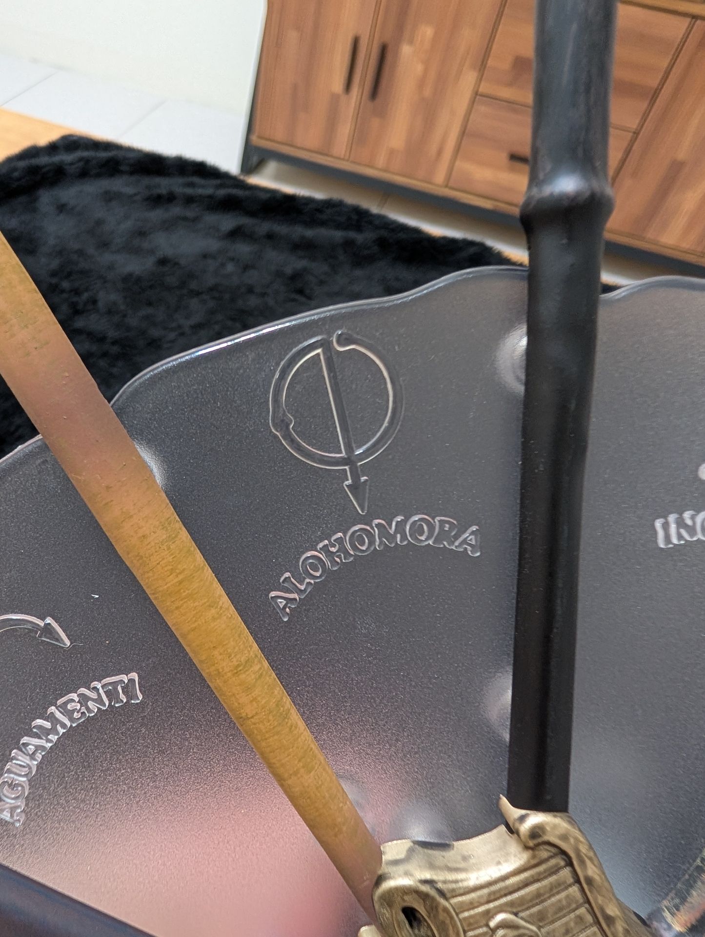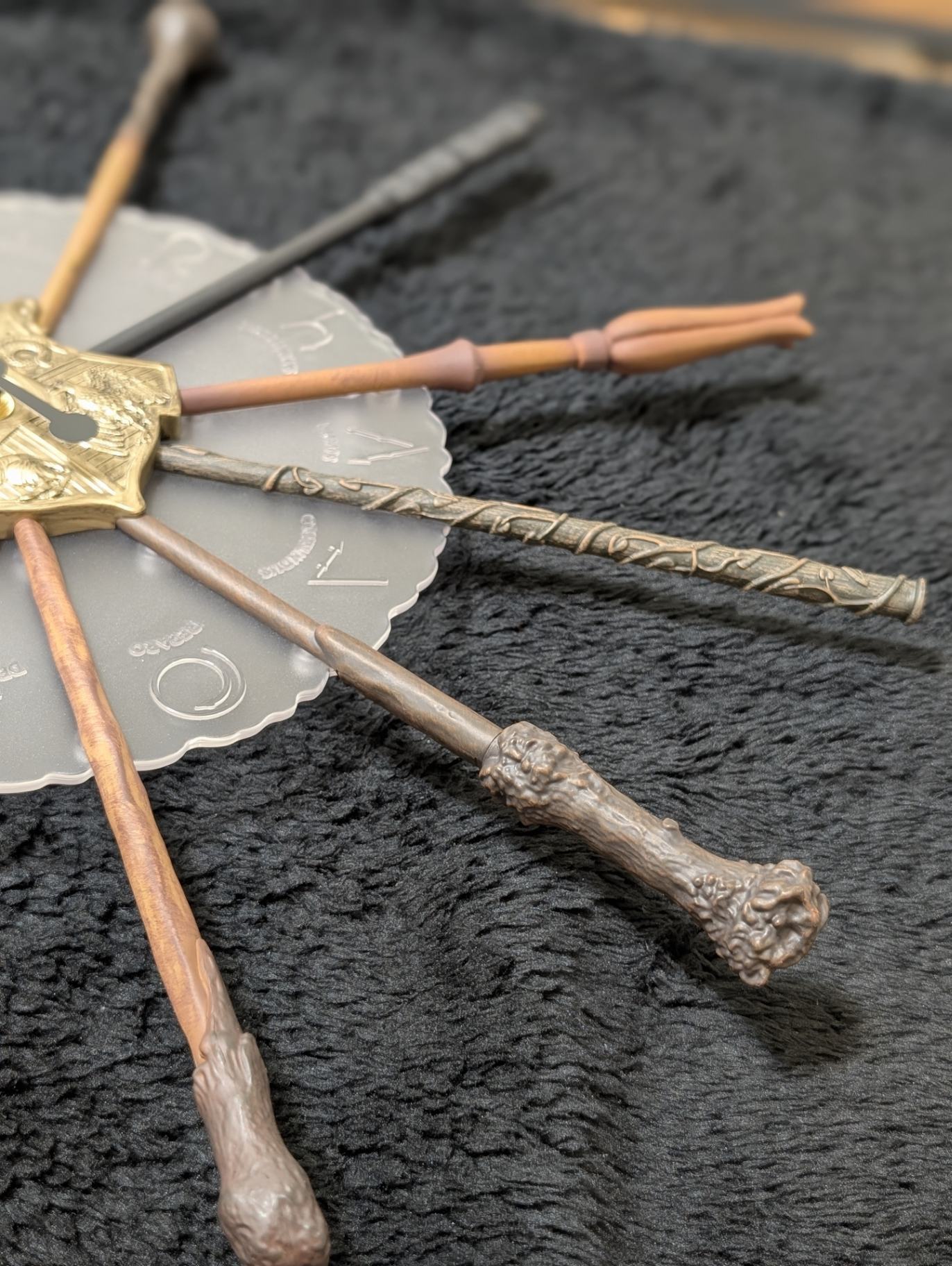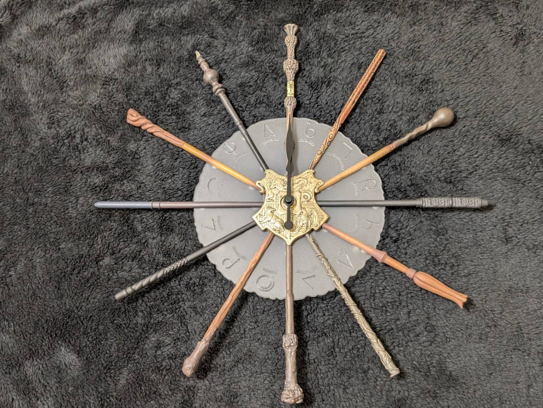 時鐘的盤面(?)也是塑膠製的,在每個魔杖中間會有一個咒語~