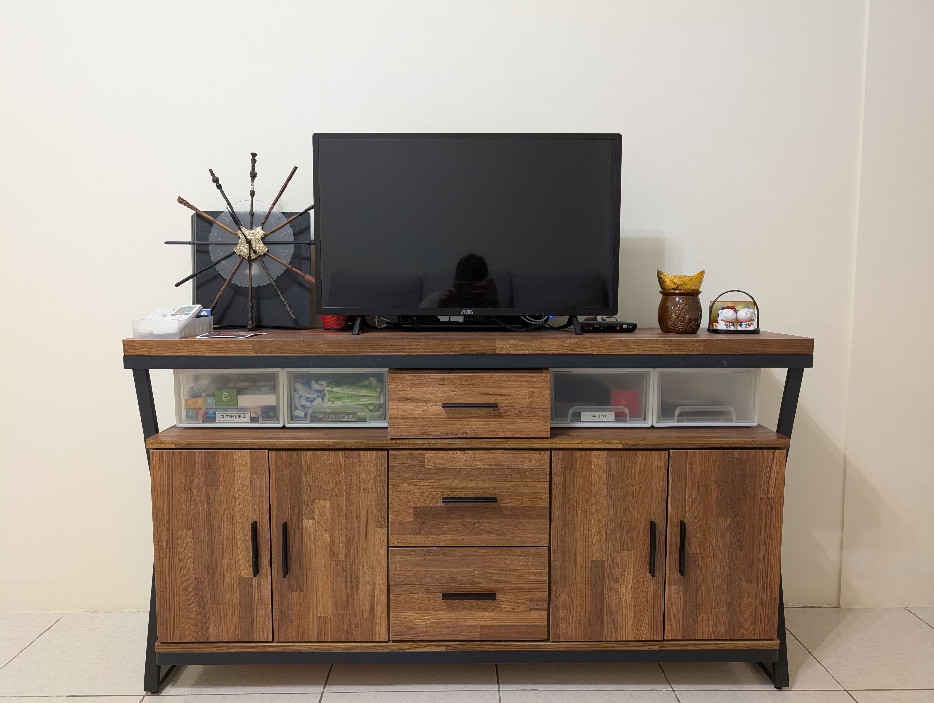 所以試著放在電視櫃上,後面是PS4的黑,稍微襯托一下。