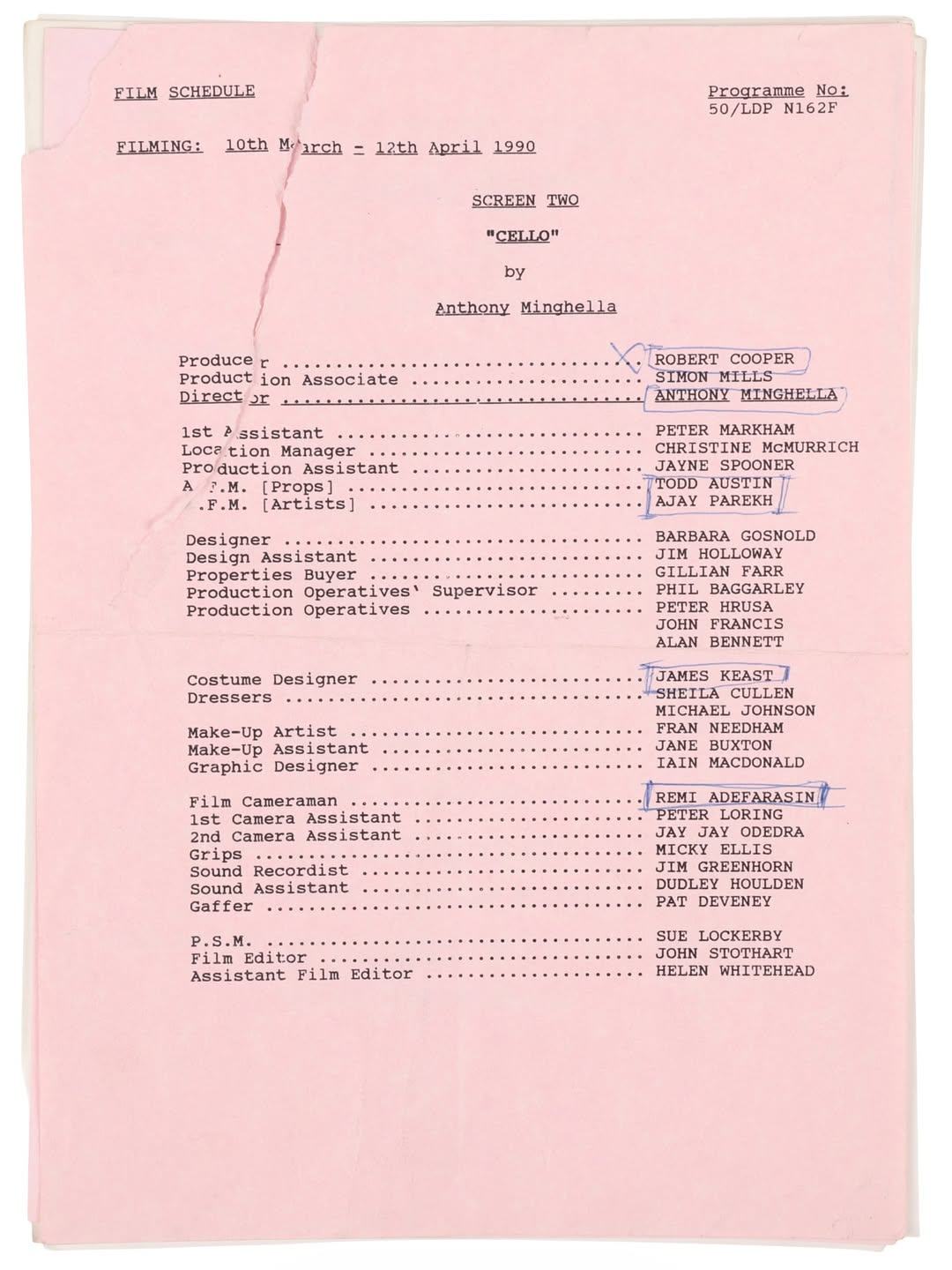 拍品包括他在拍攝Die Hard時帶注釋的劇本、他執導The Winter Guest時的拍攝物品(含場記板、帶有手寫注釋的劇本等)等