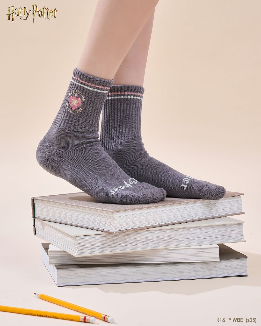 愛情靈藥襪|粉色愛心點綴柔和灰色襪身中,呈現低調卻迷人的浪漫氛圍,悄悄注入你腳下。