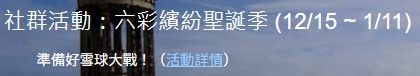 首頁活動的預告進度,寫上了雪球大戰!準備~開!打!啦!