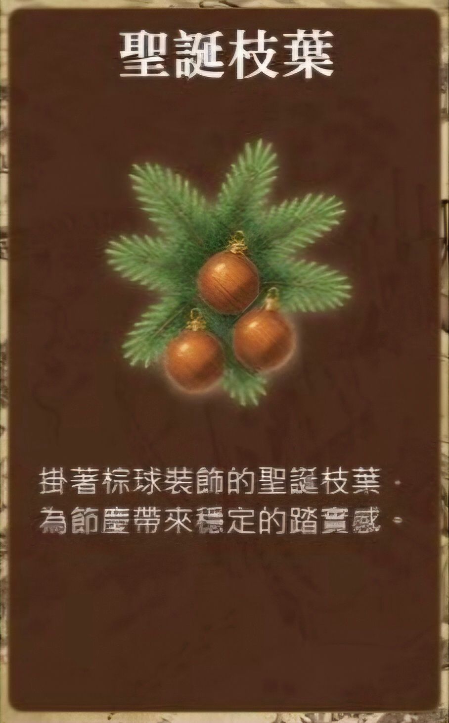 手邊有少量紫色小球聖誕枝葉,有需要的巫師們可以派貓頭鷹帶著不同顏色的枝葉到溫泉區的露比•莫芮希亞家~