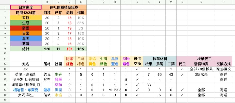 剛剛上去看了一下目前六社已經種下19棵聖誕樹,進度到16%了,還需要101棵樹。