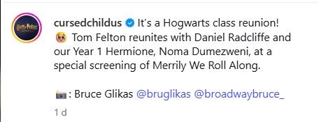 除了湯姆.費爾頓 (Tom Felton),其實在紐約哈德遜劇院 (Hudson Theatre) 舉行的【異曲同夢 (Merrily We Roll Along)】音樂劇電影特別放映活動現場的還有另一位魔法世界的成員! 出席的還有被詛咒的孩子舞台劇初代卡司,飾演妙麗的諾瑪‧杜馬薇 (Noma Dumezweni) 。 三人也留下了合影,實現跨次元的同框! 3