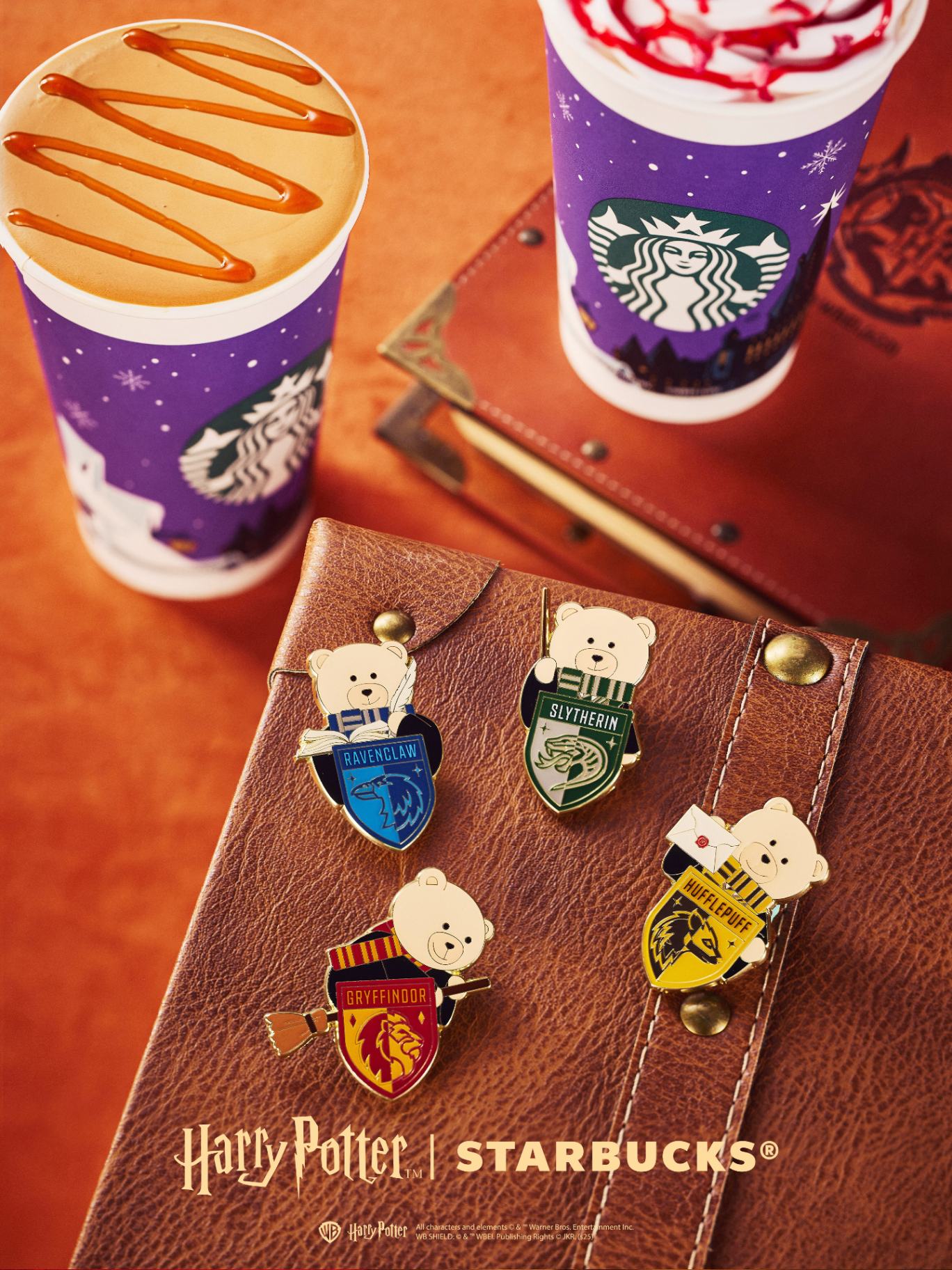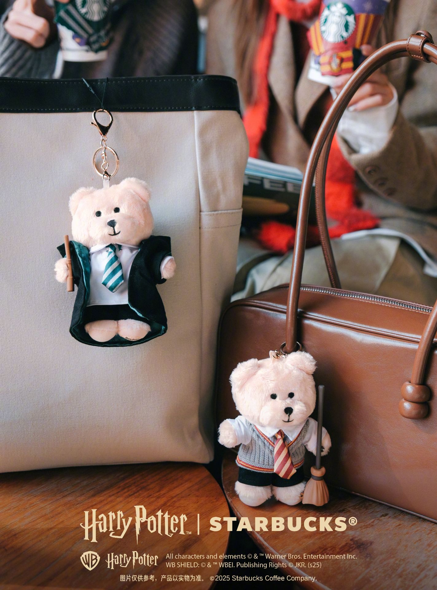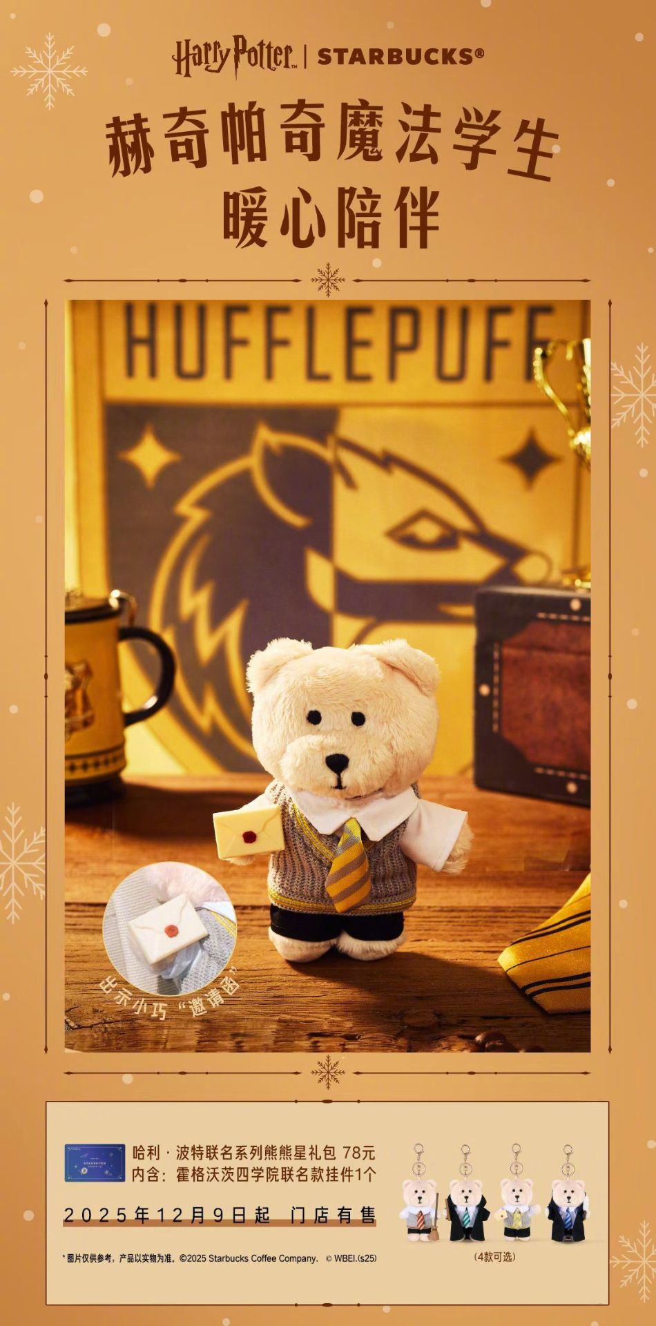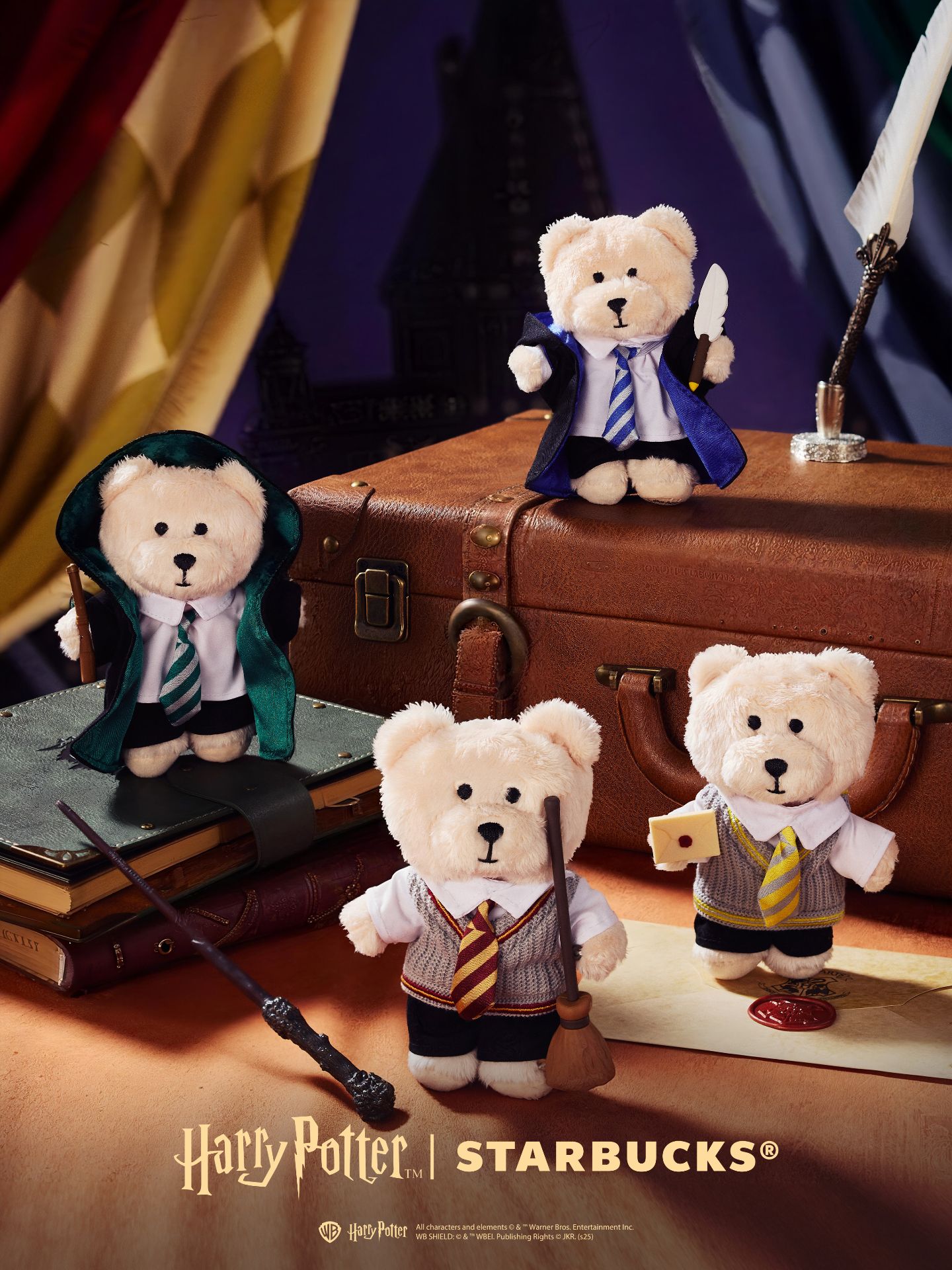 這次聯名推出的周邊有魔法學院杯套、紙杯、杯墊、紙袋、魔杖擺件、四學院熊熊擺件、魔法慶典聯名徽章和貼紙。