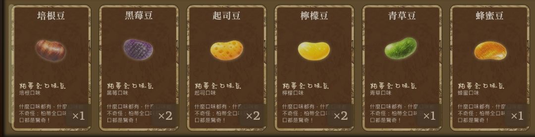到目前我還少兩種豆子,也在懷疑是不是要混搭不同社團的衣服比較能提高得到不同色豆子的機率?