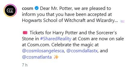 前陣子分享過神秘的魔法石電影將以「共享實境 (Shared Reality)」形式進駐 Cosm 場館,現在已經開放售票啦!