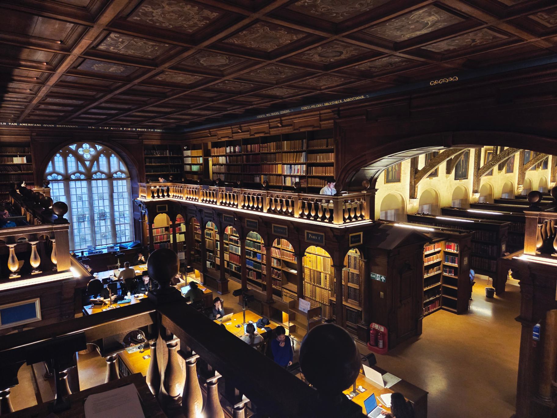 我非常享受在這間圖書館讀書,只要當天的工作不會使用到雙螢幕,我又沒有懶得出門XD,就會跑來這裡讀書。雖然不能帶包包,但是可以手持筆電與充電線來使用。每個座位都有明亮的檯燈和充電插頭,是在古典中兼具現代方便性的圖書館!