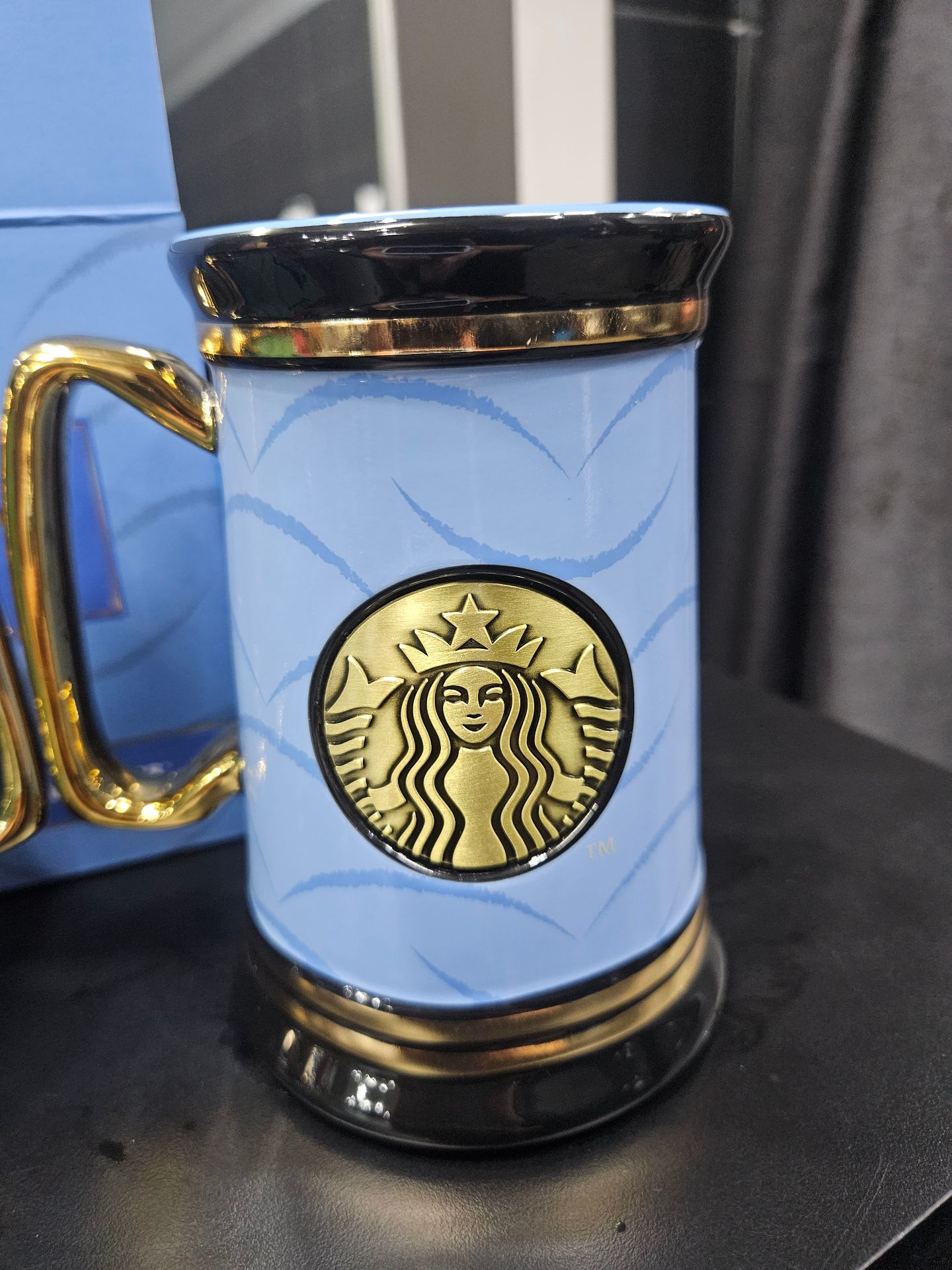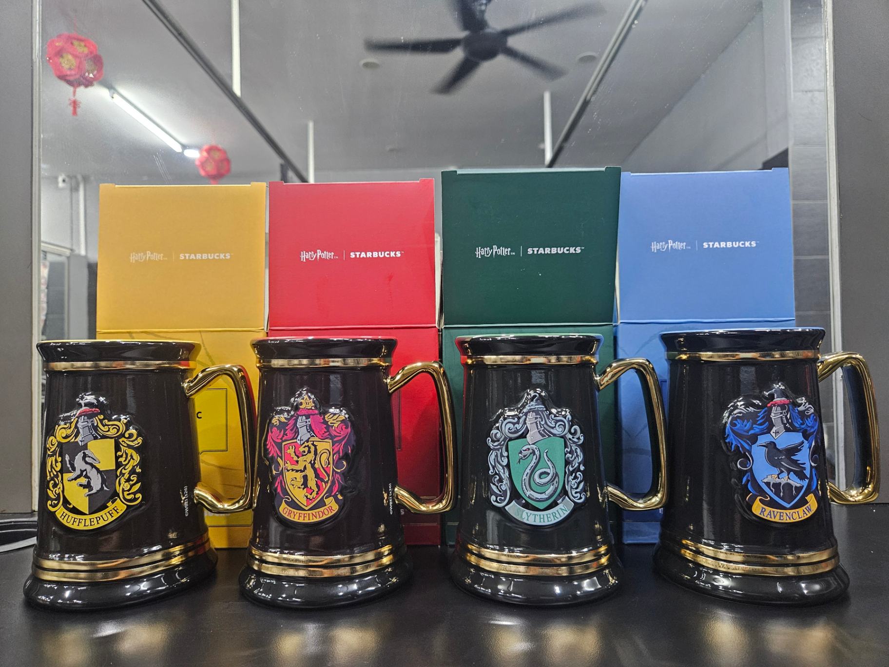 星巴克聯名商品學院杯子的全家福 盒子也是有點漂亮的 還沒放燒水的全家福 放燒水了的忘記拍全家福就這樣湊合看吧XD 背面全部一樣的都是星巴克LOGO 杯子裡面上面 個人覺得杯子拿在手有滿有重量的😂 4