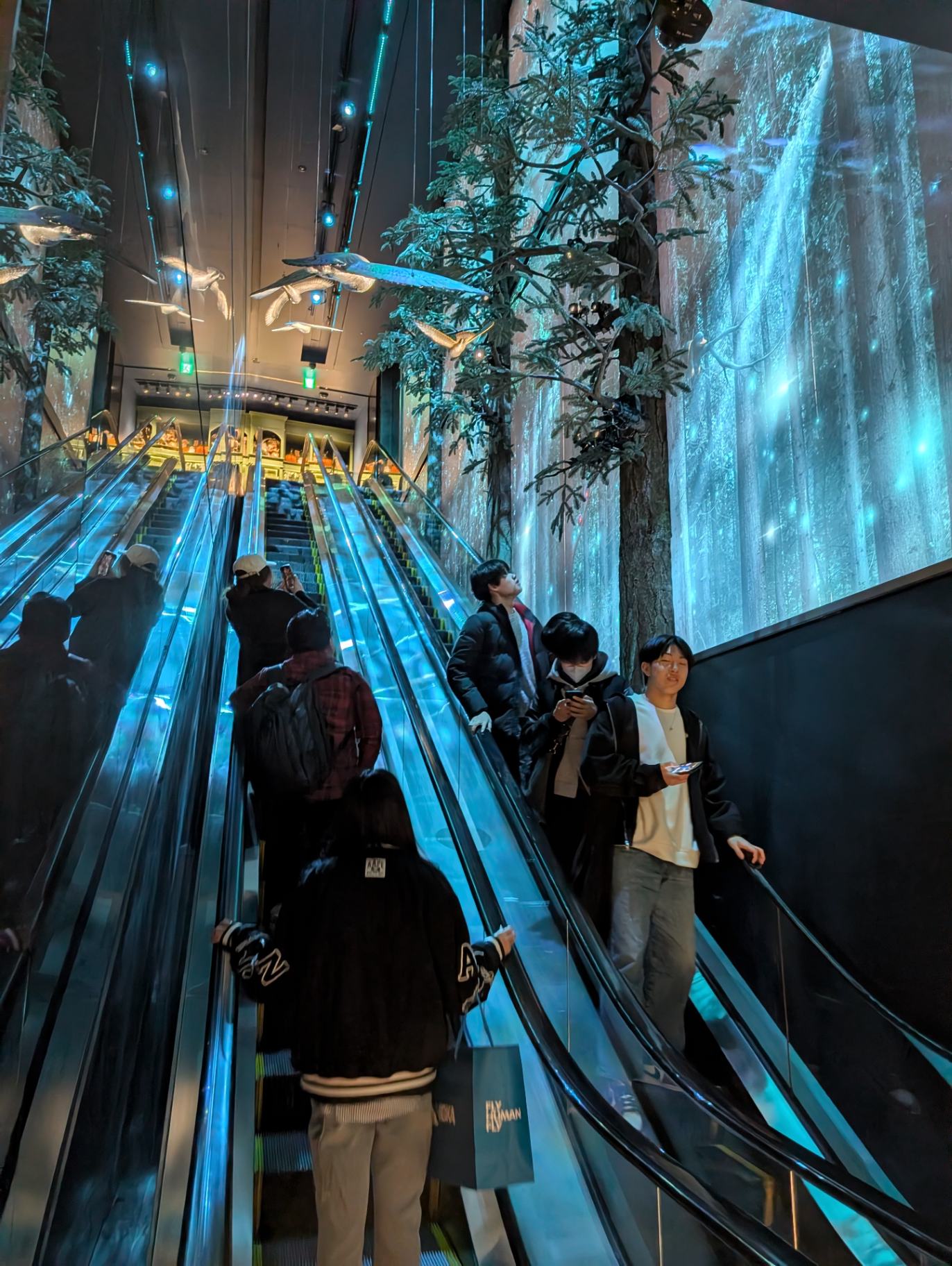 原宿旗艦店還有另一個特點是禁忌森林主題的手扶梯!