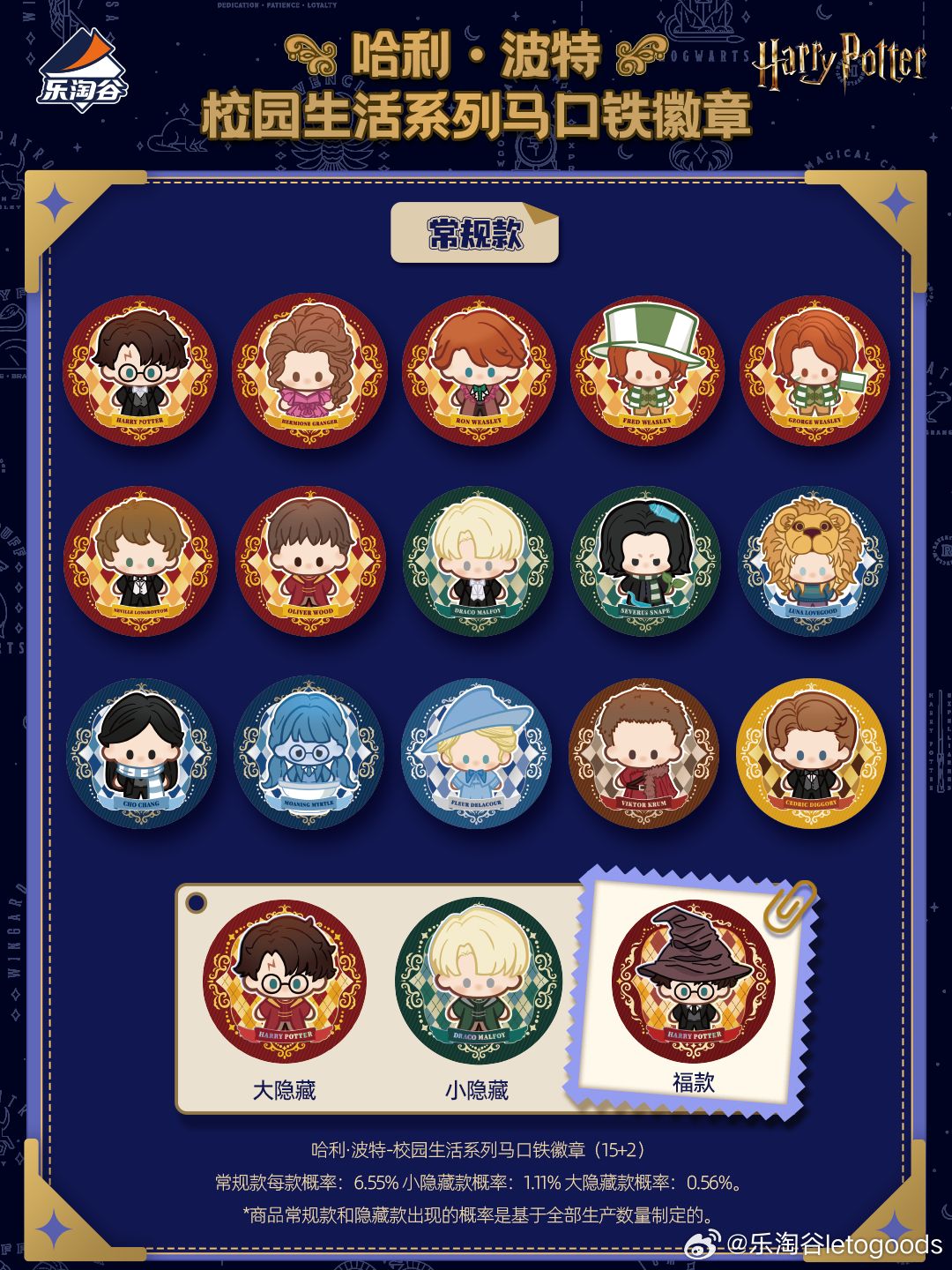 樂淘谷新品:哈利波特校園生活系列徽章盲袋