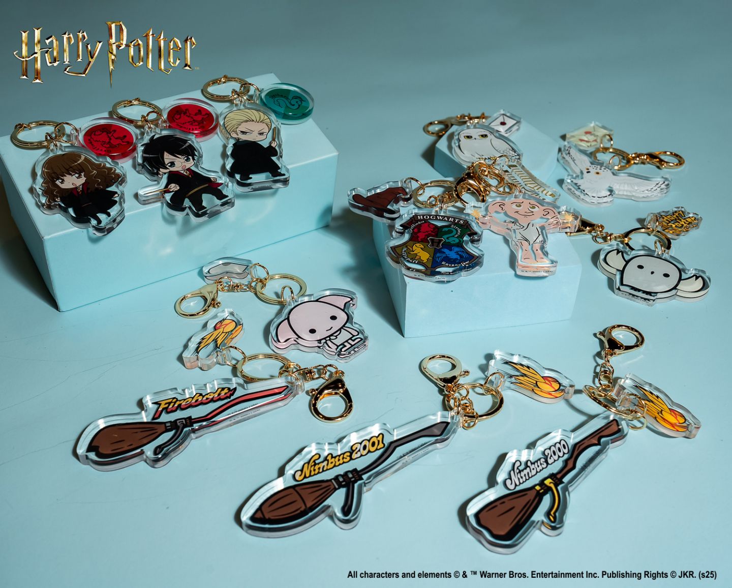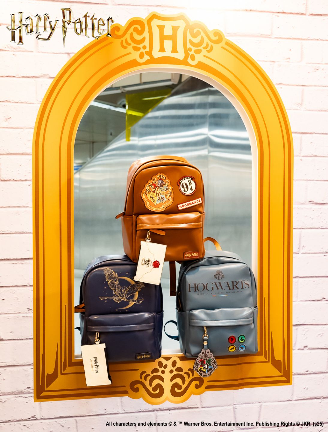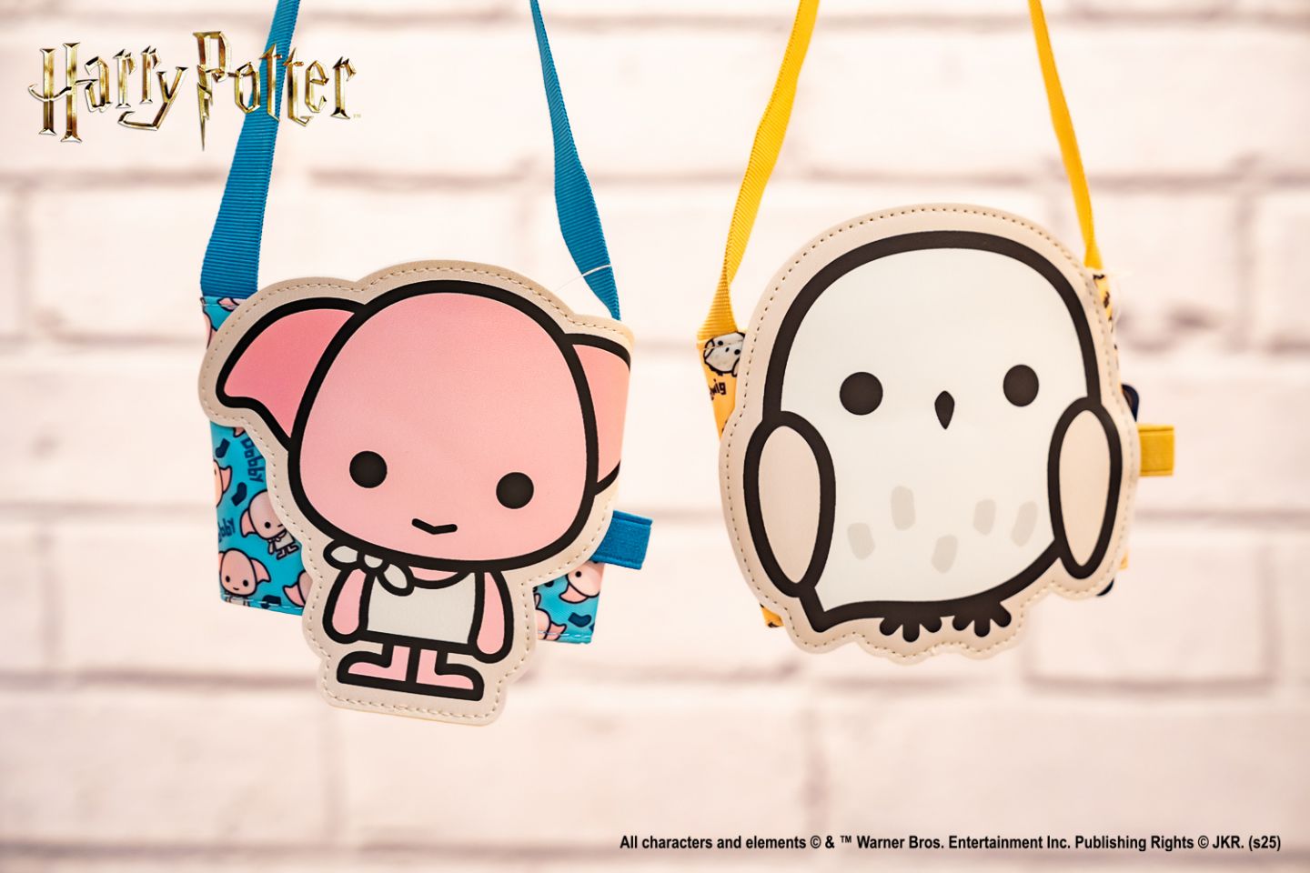實用商品中,「燙金零錢包」以霍格華茲學院色系搭配皮革材質,既能收納也能作為配件;立體造型的「多比與嘿美存錢筒」則成為居家療癒小物。外出族群必備的還有三款「後背包」,以藍灰、酒紅與棕色呈現穩重學院風;另有十二款角色鑰匙圈、四款輕便側背包,選擇多到容易讓人陷入選擇障礙。