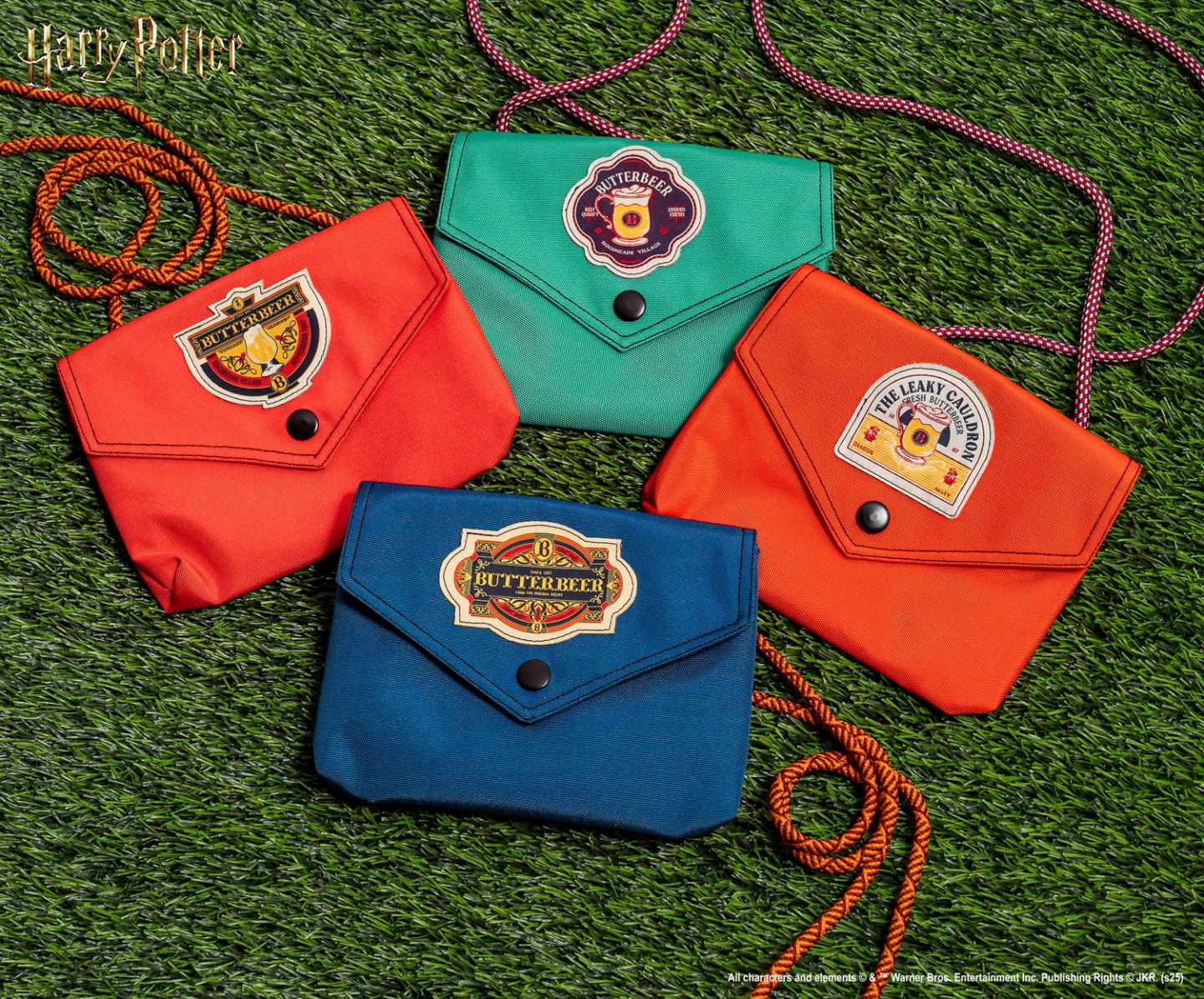 粉絲喜愛的角色周邊也不少,包括八款 Q 版「夜光流沙杯墊」、Q 版主角們的小物、以及以柔軟絨毛打造的「毛毛手拿包」——粉色毛毛球款與白色嘿美款都是現場人氣焦點。外出用品中,紅、棕、藍三色「皮革側背包」以學院徽章與金屬釦環點綴,正式、休閒穿搭皆適合。粉綠、海軍藍與米白三色的奶油啤酒圖樣「飲料提袋」也相當吸睛。