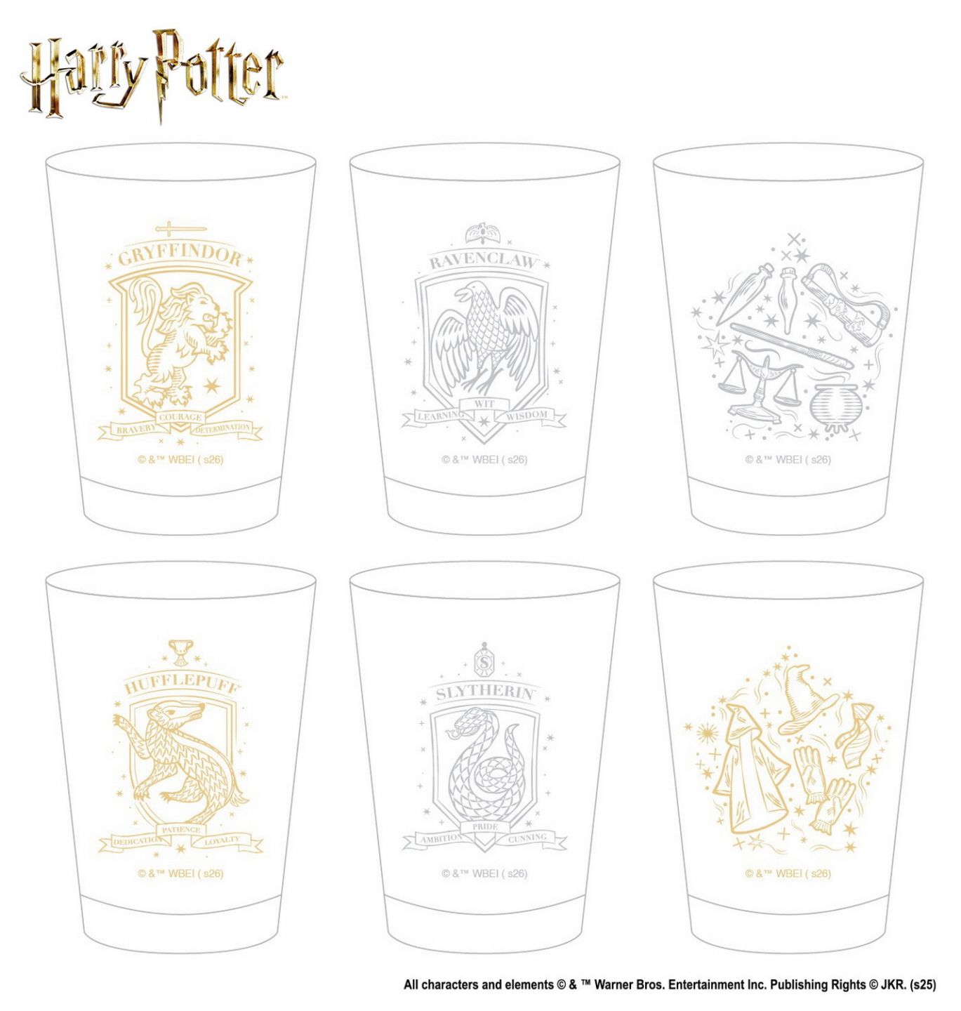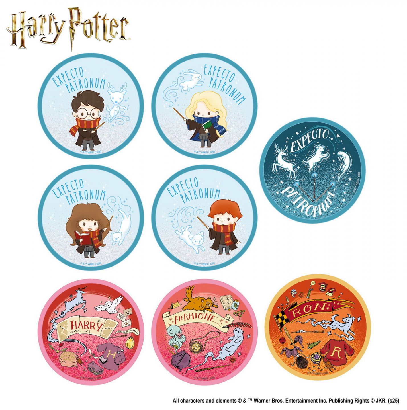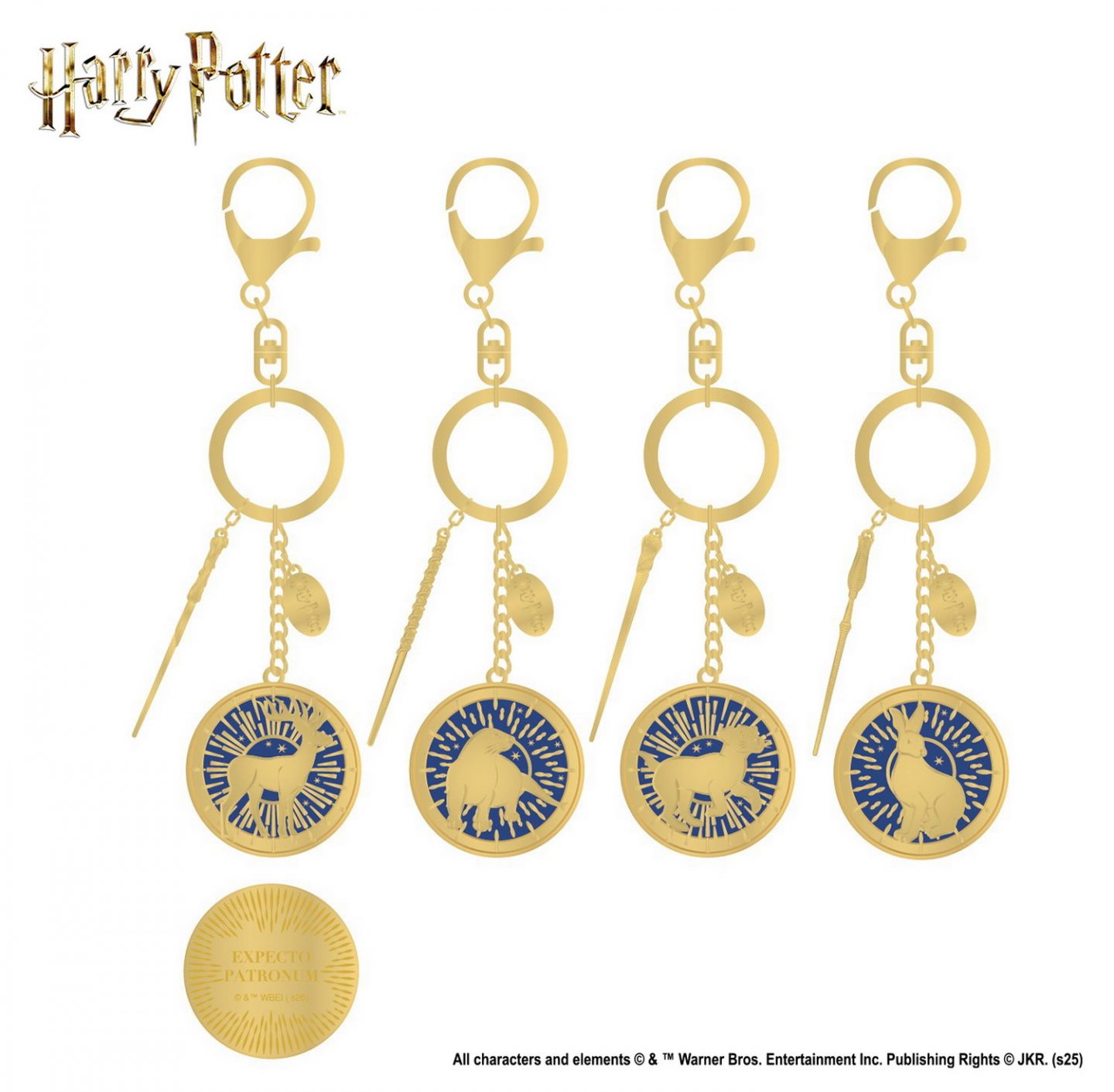 居家品項中,霍格華茲四學院「彩色夜光杯墊」以紅、黃、綠、藍四色呈現,熄燈後啟動夜光模式,搭配金銀線條設計的「學院玻璃杯組」讓每一口飲品都充滿儀式感。護法主題「金屬鑰匙圈」則以雄鹿、兔子等護法形象搭配魔杖造型,質感細節滿滿。
