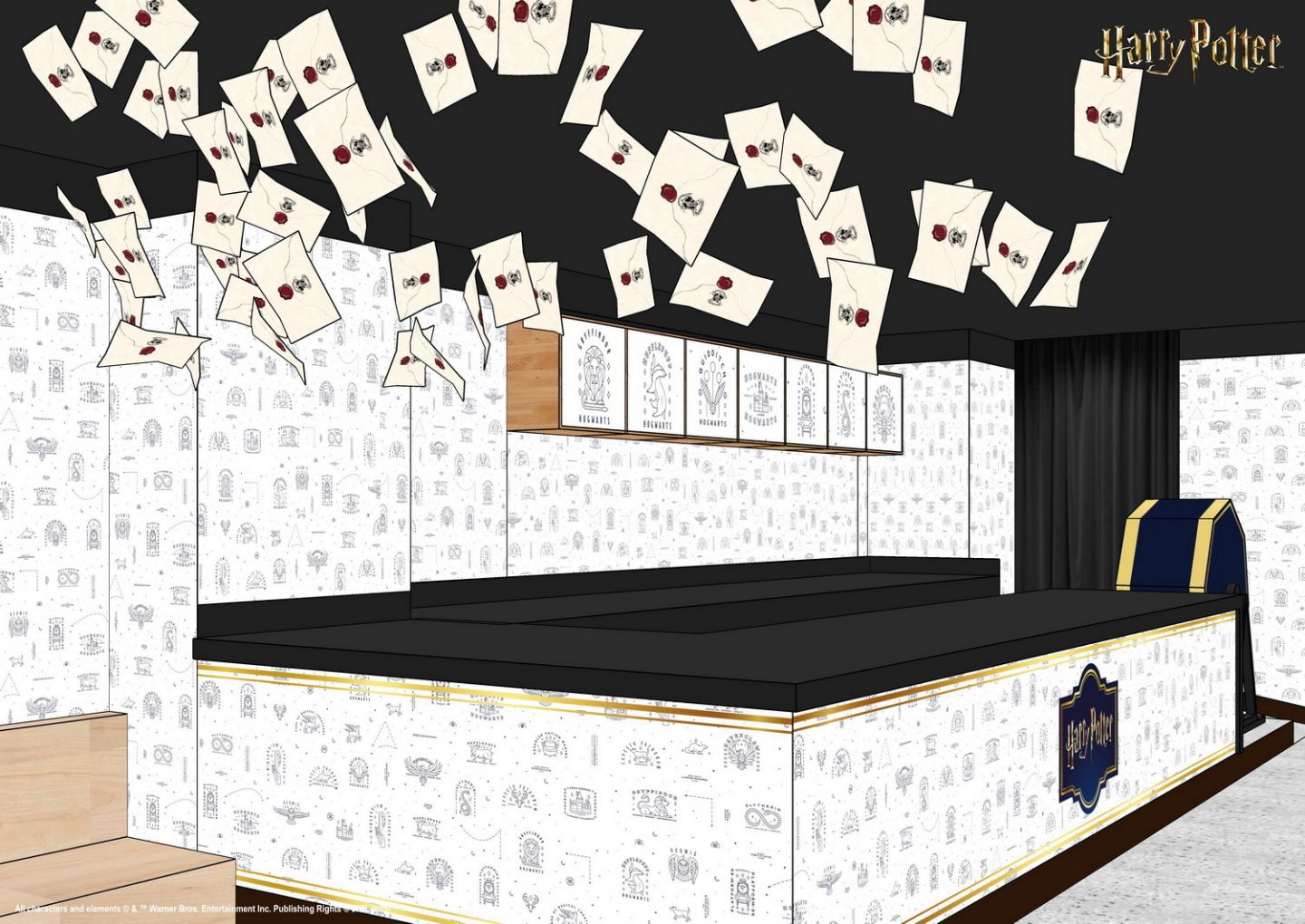 沿著動線走入「入學通知區」,天花板飛舞的霍格華茲錄取通知信讓場景浪漫又夢幻。最終來到以霍格華茲大餐廳為靈感設計的「學生餐廳區」,金色燭光、拱形天花與長桌椅讓人忍不住駐足拍照。整體六大場景氣勢十足,走一圈彷彿重返霍格華茲校園。